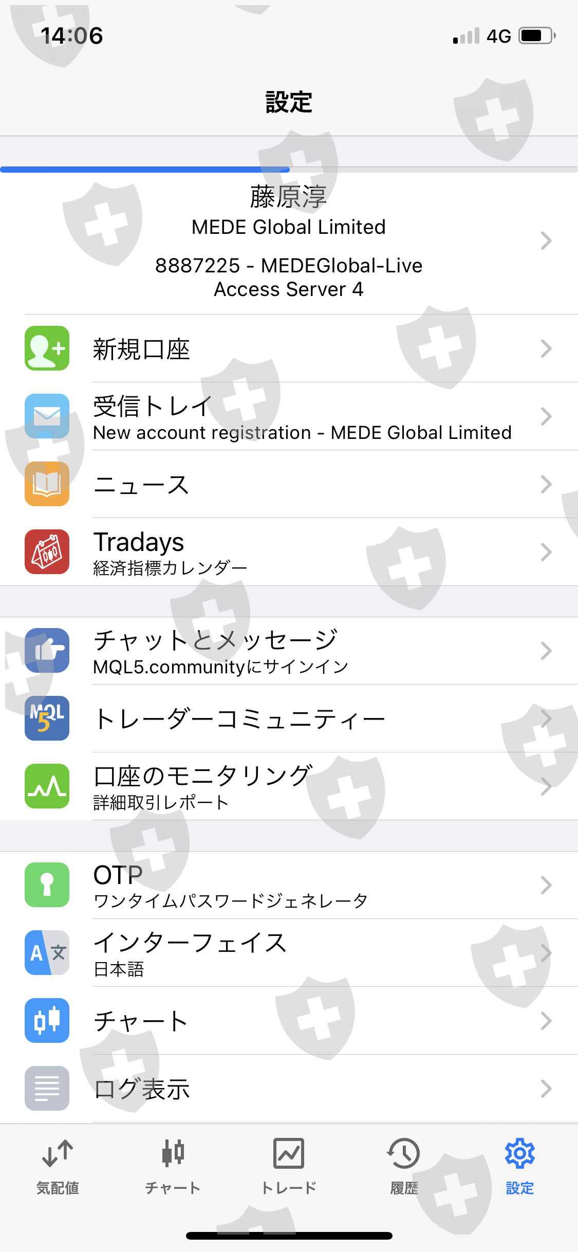 MT5アプリに設定されたFX投資会社がMEDE Globalになります。※このほかにもLINE上でのやり取り(履歴)は残っております。