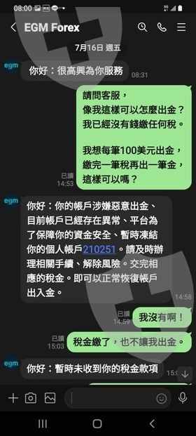 前一陣子賴有一個陌生好友突然邀請我進去股友會。我想說也沒損失同意了,這讓我付出了慘重的代價,後來才知道他是平台的托。開始的時候他說他們是爲了回饋廣大股民,會給我發送一些短線交易策略和大盤走向。我也沒有懷疑,過了幾天開始問我持有哪些股,倉位情況說是可以幫我找專家免費的分析。分析了之後,就給我了一個直播連結,剛開始給我們分析股票,推薦股票。解套什麼對我們無微不至。偶爾還曬出他在做單的賺錢截圖,待我們與他溝通中慢慢產生了信任,便開始說要解散。重新建立個新的粉絲群,並且轉戰去外匯平台做單帶我們賺錢。後來大家在他們內部人員(大多數都是他們自己人)的煽動下,大多數羣里的客戶和我也找他們開了戶入金做單。剛開始不敢入太多資金。入了38萬做單試了試,都有賺錢。後頭就催促我加金,這樣利潤翻倍。不加金就不帶我做單等等。在他的利誘之下,繼續投入50萬元。就開始大幅度虧損,賺小單,虧大單。完全感覺就是他們能把控的。虧損嚴重後又天天催促我繼續投入資金,並承諾帶我把之前的虧損賺回。由於虧損過多,我抱著想賺回來的態度,又投入了100萬元。最後賺到到幾千萬。想出金時,卻說太多人排隊明天才領的到,但是等到第二天並沒有出金到帳,問帶單老師怎麼辦,表示願意幫我談,誰知道最後人直接消失。