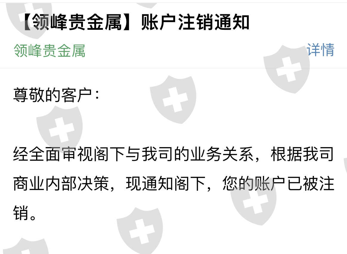 本人在领峰贵金属受到诱导注资多赠金多的诱惑下,平台严重滑点亏损15000多美元,折合人民币10万多人民币,实名给客服部反馈说后台不要暗箱加点了行不行,结果注销了我的账户!这样随意注销账户的平台请大家远离,开始没有盈利之前几乎每天打电话督促多入金有更多优惠活动,出现客户亏损严重就找理由注销账户,这是一茬一茬的在割韭菜!