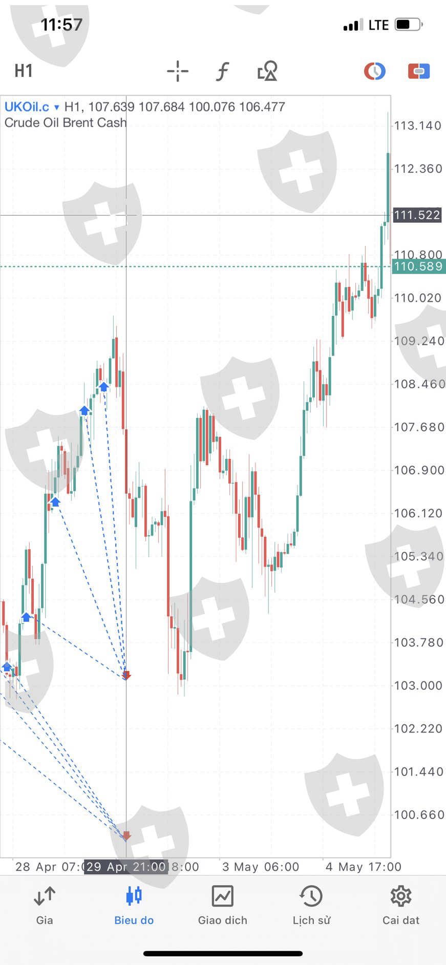 lệnh 1: buy Ukoil 5.0 vào giá 103.431 đóng lệnh giá 100.177 -$16.270