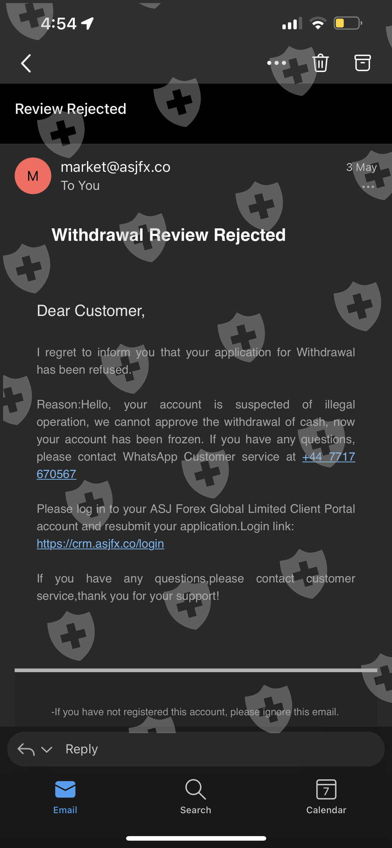 2022年5月4日,我的ASJ帐户在没有提前通知的情况下突然被禁用。我无法取款,申请被拒绝。处理我的请求时,客服没有耐心。账号被禁用的第二天,才收到邮件说我的账号涉嫌利用我们的平台规则谋取不正当利益。我在交易时使用ASJ平台进行正常的外汇交易,中间没有其他不正当利益。我怀疑平台想阻止我提取自己的钱。我有一些下线和上线曾经提过钱面临同样的情况,只有那些从未提过钱的新账户用户仍然活跃并且能够交易。