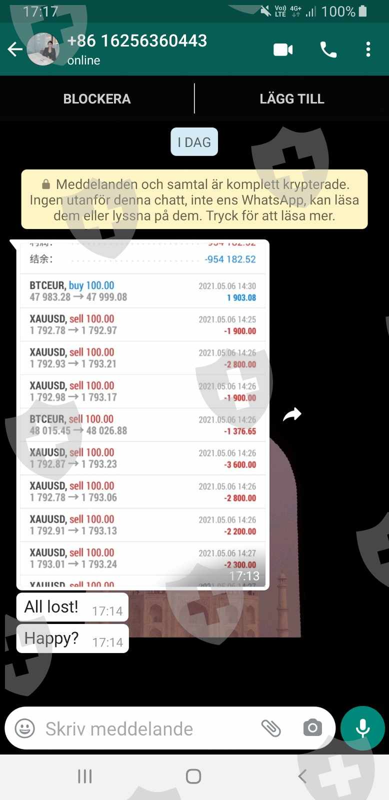 Met a "nice" chinese lady trough Whatsapp, she had "miss-dialed" the phonenumber and in the end (to make a long story short, I got pig-butchered trough this scam broker and lost 50 000 $US.