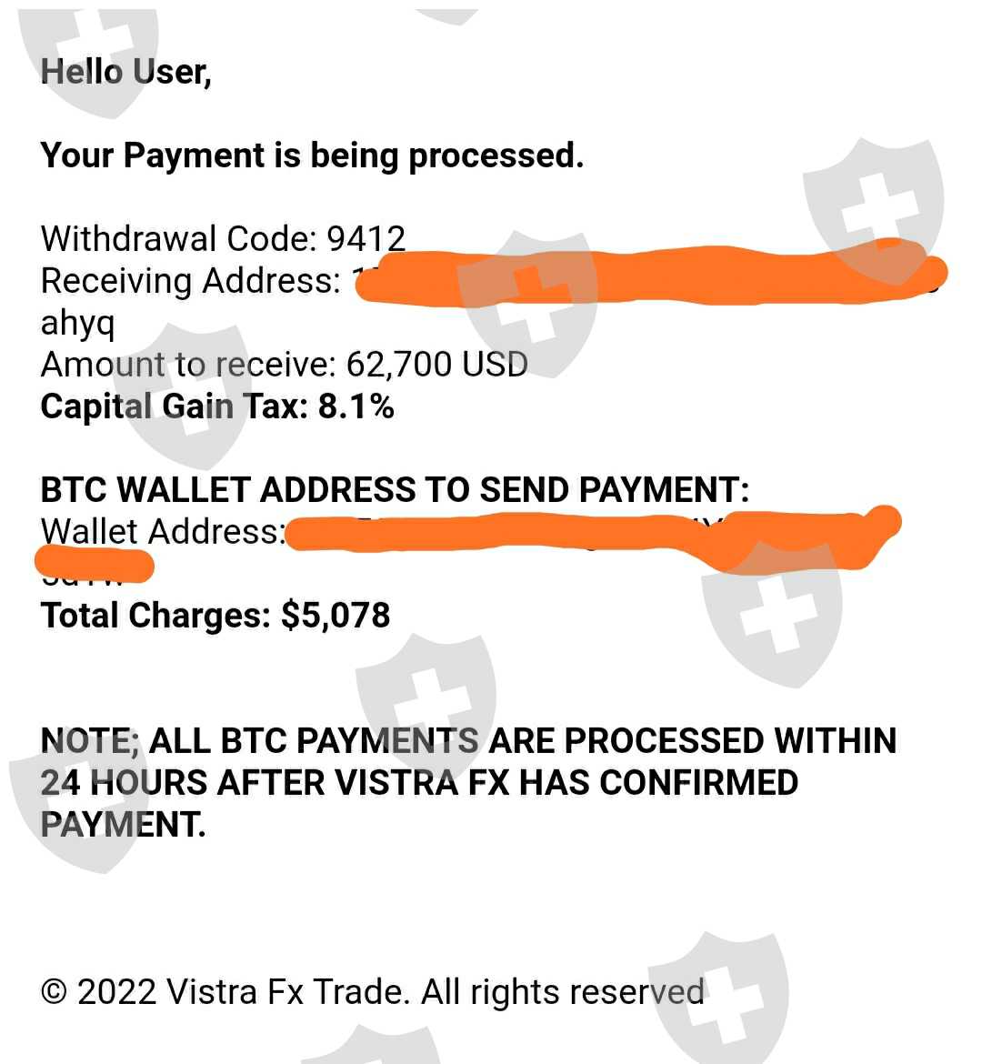 我在这家公司投资了1,500美元。它涨到了62,774美元。之后,我申请了提款。来了一封邮件说我必须先缴纳金额的8.1%的税,即5078美元才能提款。这是一个骗局。