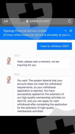 我连续一周每天都打电话给他们,要求退还我的钱,客户经理一直拒绝联系我,所以我平仓了所有的持仓并提出提款请求,他们一直拖延我直到 fintrack / org 取回款项并进一步曝光了Lunboux的恶意行为,他们会不择手段地试图让你输给他们。