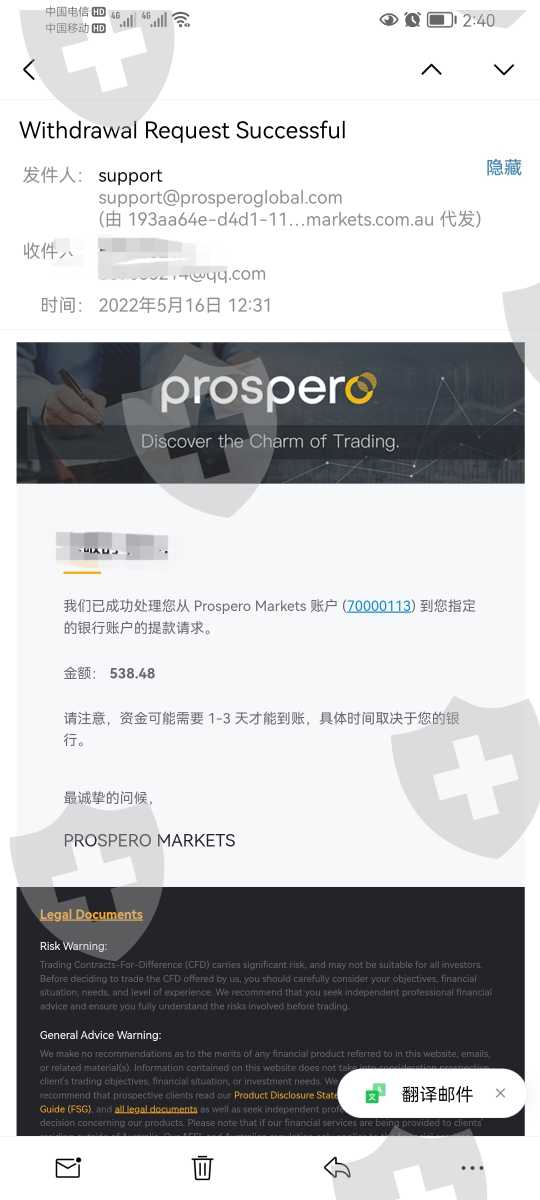 前后一共在浦华证券入金几万美金基本上都爆仓 昨天晚上申请出金538.48美金今天中午12.31分已经扣款下午2点的时候到官网咨询今天能不能到账 官网客服说需要我提供资料证明给他们 意思就是不提供资料证明就不给出金 这样的黑平台真TM无语