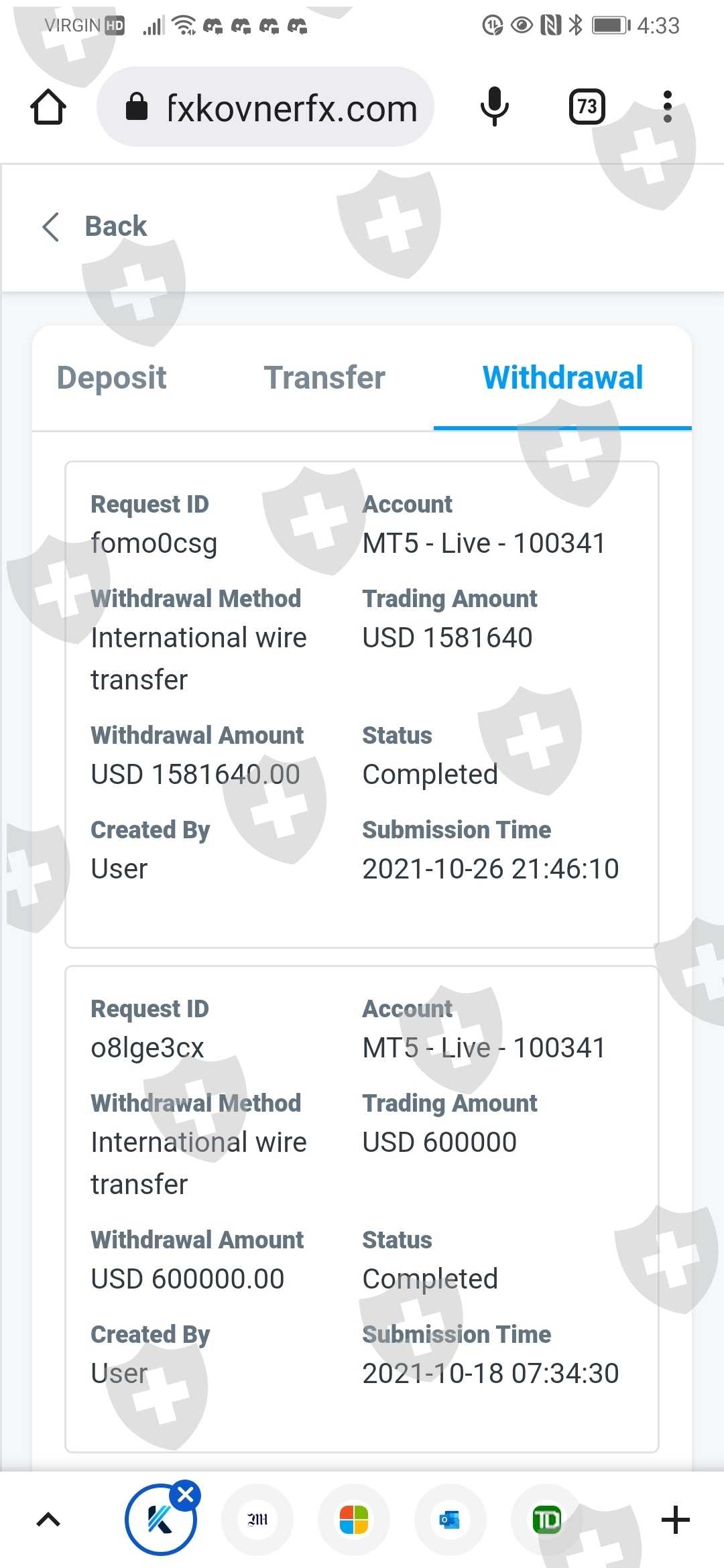 自去年向 fxkovner 申请218万美元的出金要求以来,交了25万多的个人收入税,至今无法出金
