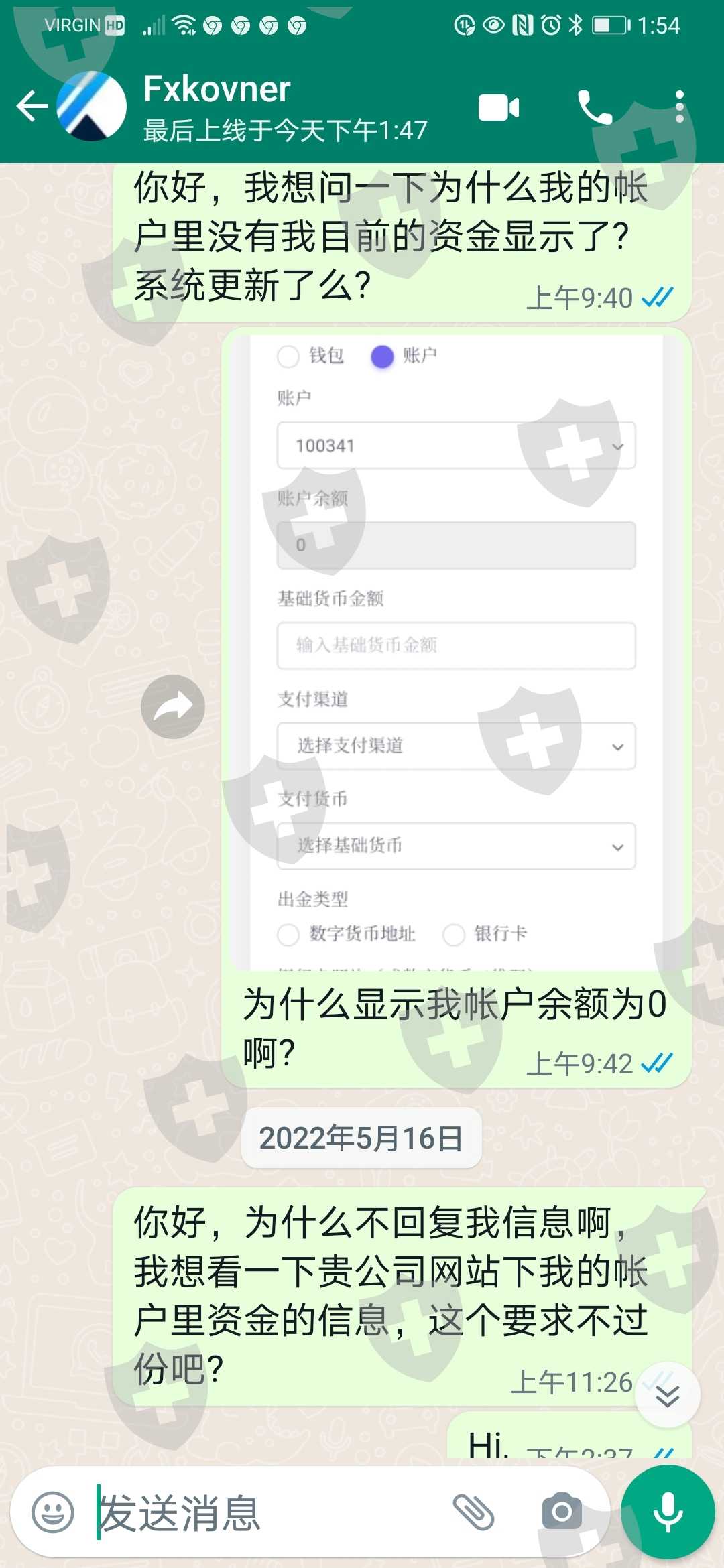 我在 fxkovneraa.com 的交易帐号为100341,去年5月份至10月初在 fxkovneraa.com (原来的平台叫 sunton capital holding) 交易外汇及贵金属,本金约38万美元,形成了180多万美元的利润,4个月平台收了我8万9千700美元的手续费,在去年10月中旬我向申请出金时,被告知要交纳27万2301美元的税(平台称是加拿大税务局向它们授权向我征收的,我据此问过加拿大税局CRA,得到的答复是CRA并未向任何国际机构有过此类授权,我的 capital gain必须向CRA自行申报并交纳),我因此视 fxkovner 要求的交税为这个平台收类似截黑道(要向从此过,留下买路财式)的变相讹作,因为平台扣压了我218万多美元的本金及利润,作为平台讲的先决条件就是交那27万2301美元的税,我只能想尽一切办法去筹钱交税(为此我又另外负担了25万多美元的债,加上以前入金fxkovner 平台炒外汇之前所借的银行 line credit ,现在总共背负约50多万美元的债,line credit), 至今年1月22号我累计交纳了25万1千多美元的税,(其中在1月22号那天,fxkovner 平台客服要求我交税交到它们在加拿大多伦多的一个商业合伙人的帐户里,讲我把钱电汇到它们这个合伙人 gwxu reno inc 帐户下与电汇到 fxkovner capital holding 帐户下是一样的,这个合伙人的公司是多伦多的一家建筑装修公司,我按fxkovner 客服的要求,在那天转了8607美元去 gwxu reno inc 帐户下,隔了两天却被告知 fxkovner 无法收到 gwxu reno inc. 的钱,让我马上去我的银行申请强制退款,但为时已晚,我的钱已转入 gwxu reno inc 帐户口,fxkovner 又讲没有收到钱,我必须继续交纳剩余的税金,我向加拿大警局报警希望通过我的银行及 gwxu reno inc. 的收款银行追回我的那8607美元,被警方告知已无追回之可能),我又向fxkovner 平台询问我的全部本金及利润合共218万2301美元,什么时候才能给出金,并向平台讲我现在还负担着近60万美元(70多万加元)的债(银行的 line credit 形式,年利率为6.7%,以后随着银行逐步加息,贷款利率还会更高.. )fxkovner 平台客服还是坚持我必须要交纳完所有的税,才会安排出金,而且我在 fxkovner capital holding 炒汇交易帐户也早在去年11月已经被 fxkovner 平台冻结,至今无法进行任何交易,现在我在 fxkovneraa.com 我的帐户下原来在两个星期以前还显示的218万多美元,已经被fxkovner 清零了,我再三联系 fxkovner 客服平台要求给予答复及合理解释(为什么把我那218万多美元清0),三个客服帐号都不再回复我的信息,我急切希望得到有关机构的帮助..