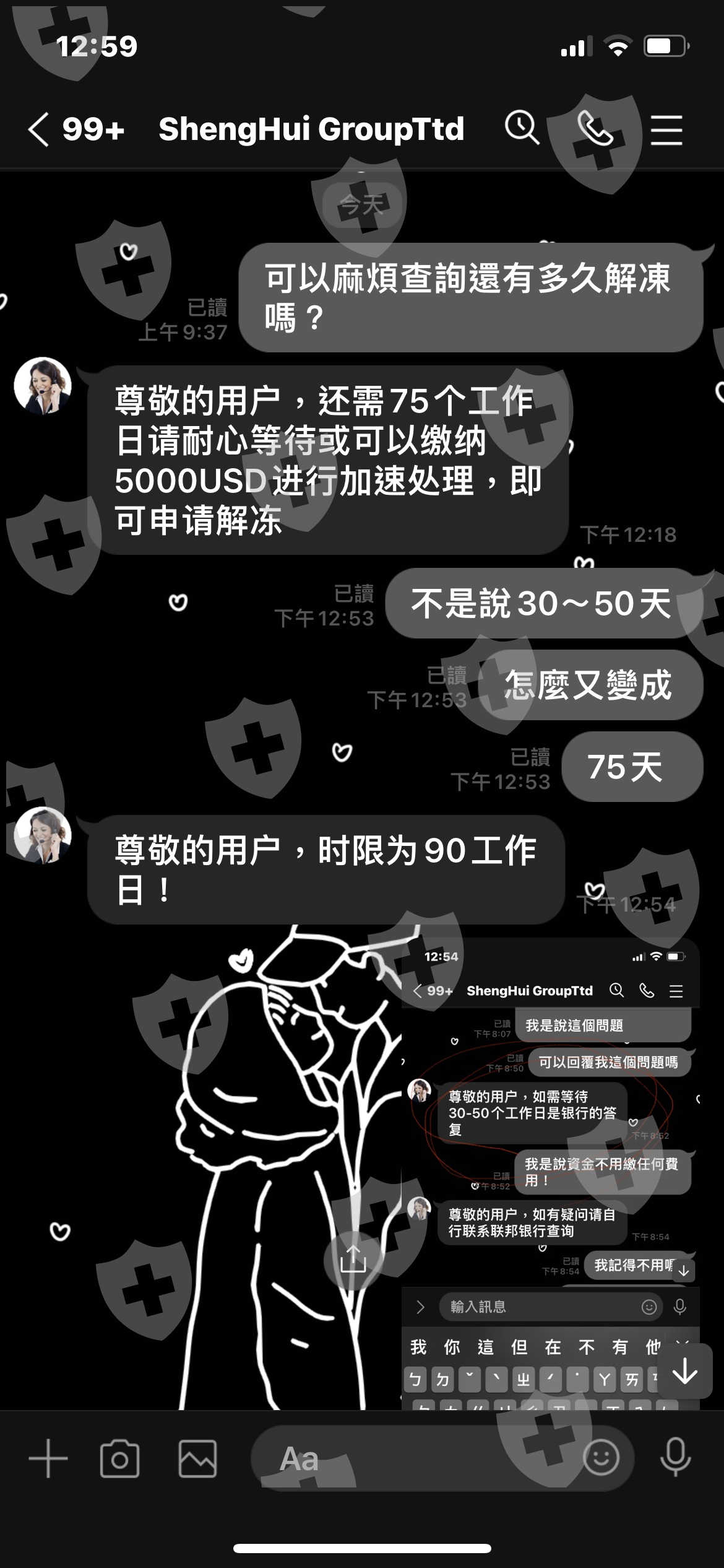 資金凍結,平台告知我需等待資金解凍30~50天,後來又改口說時限為90天!