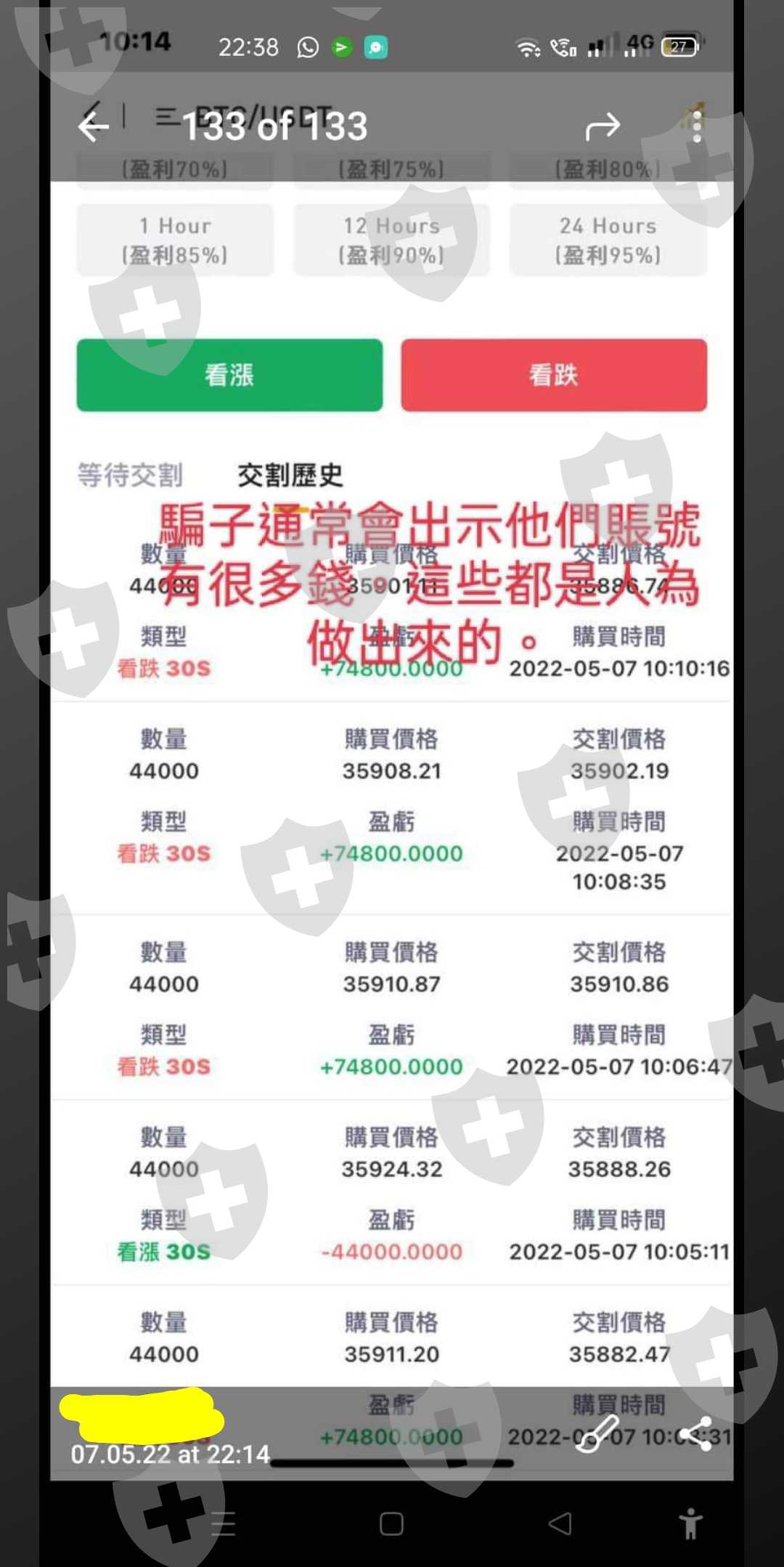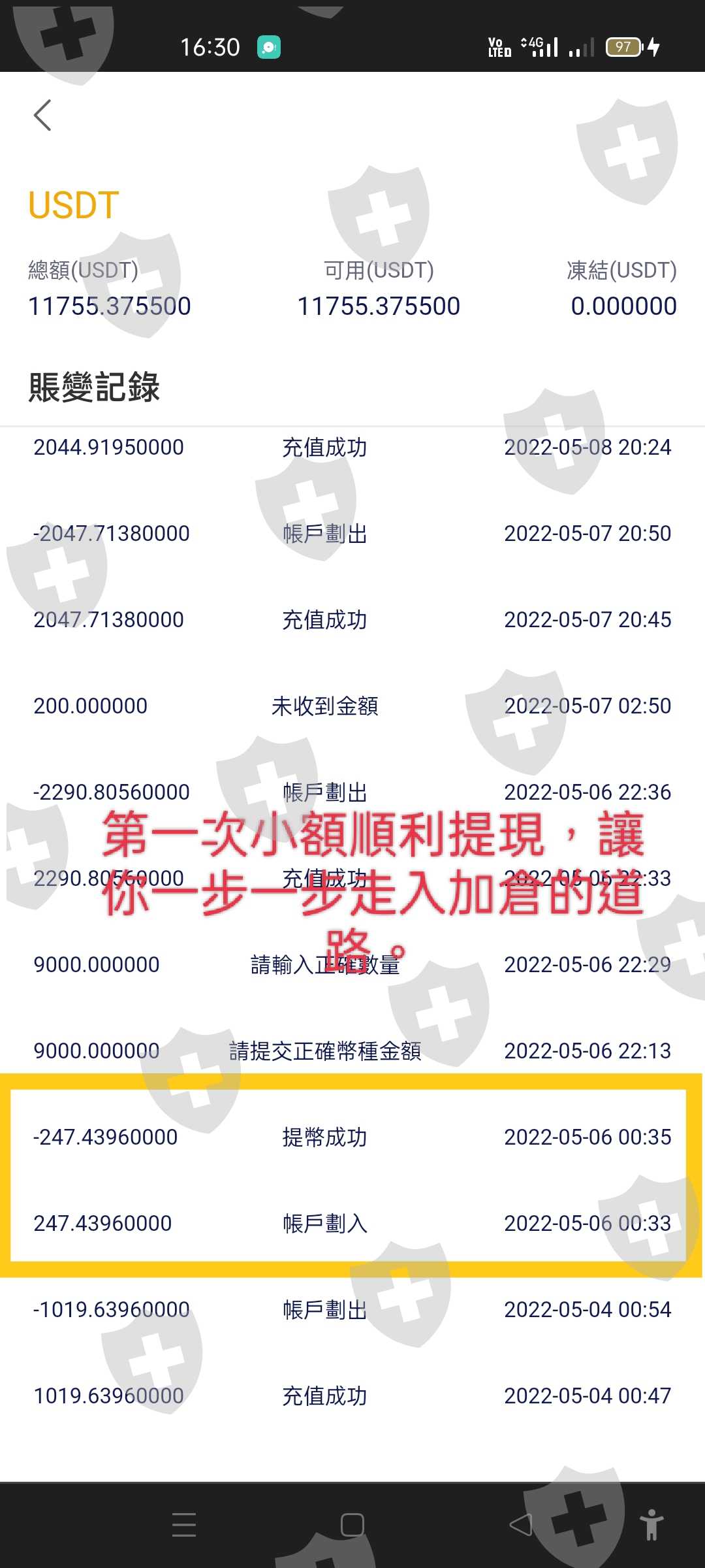 第一次小額提起,放下戒心。第二次24小時審核或區塊鏈堵塞,最後一次,觸動大提款通道,要交40巴仙以你現在的倉位。期間不斷叫你建倉,誘導你倉越大,利潤越大。騙子會出示你和他一起做交易和出入金的記錄,都是由他們操控,記錄都顯示很高額,讓你心動,一心動,接下來你就痛。通常會叫你入金,才肯帶你交易,一天一次,讓你期待,不入就不帶,這就是他們的心理戰術。這些騙子還會鼓勵你,要做就不要畏首畏尾,要堅持,要去創造動力,所謂的動力,就是沒錢,去想辦法借。他們不會理你死活,他們只會榨乾你身上最後一滴血。貪字就是貧,這次我狠狠的讓我體驗到,也是血的教訓。希望大家遠離這些小和黑心平台。寧吃開心粥,也不要吃愁眉飯。我慶幸沒有去借地下錢莊或信用卡,不然真的是翻不了身。