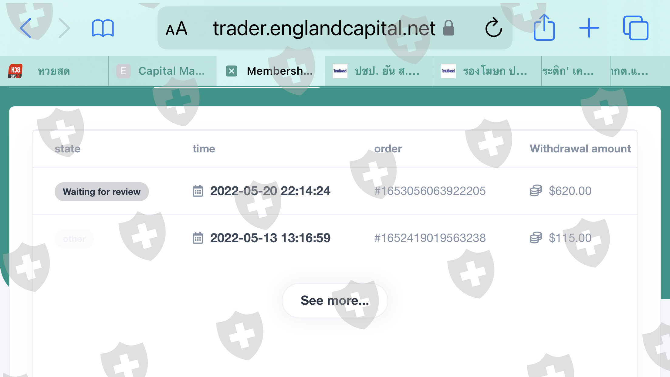作为一名尝试交易的新交易者,尝试在 2022 年 5 月 20 日 22.14(泰国时间)提款金额 620 美元,这是第二次提款试验。但是直到现在,在 24-05-2022, 7.50(泰国时间),该经纪人还没有对提款状态做出回应。请协调走哪一步。何时会收到提款?附上一张提款单的图片