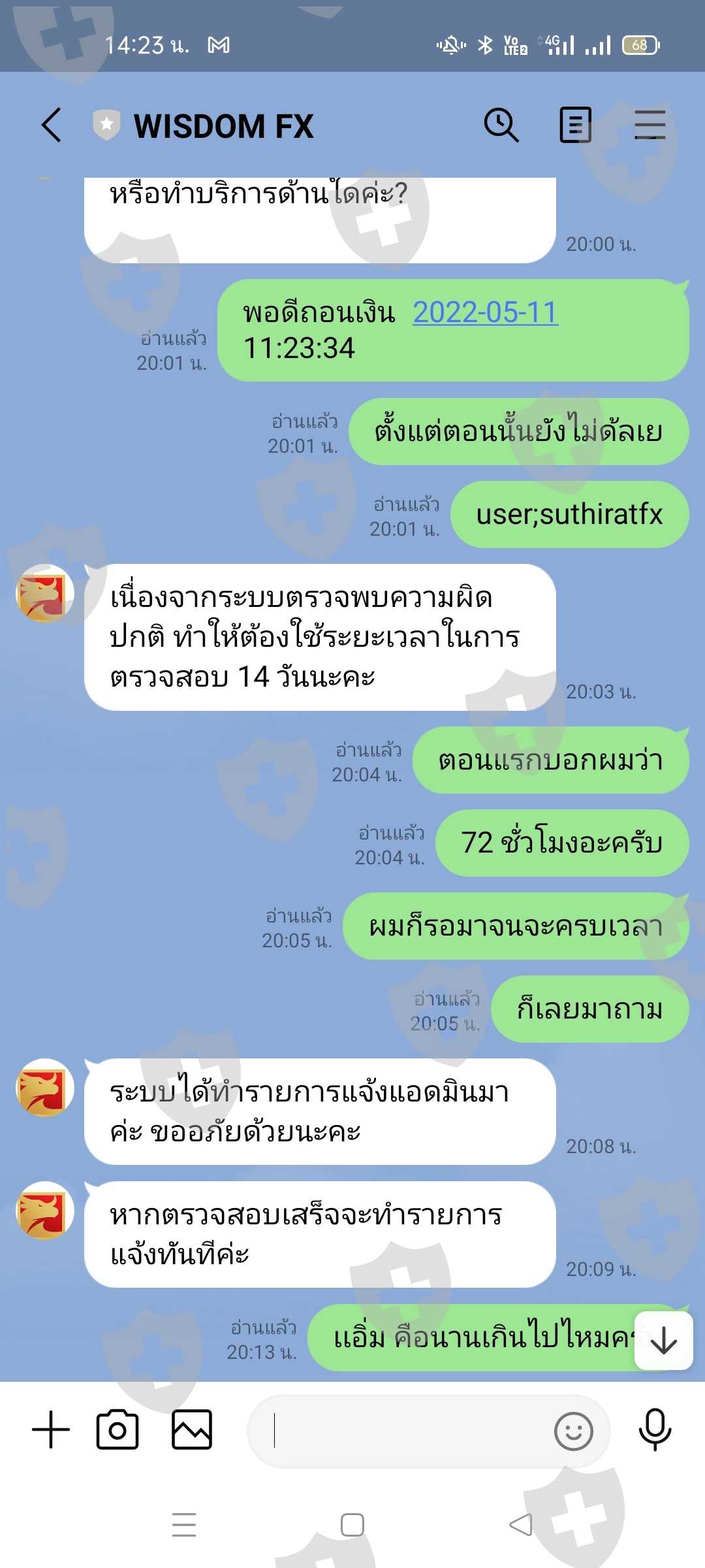 提款不说系统要求进行 14 天检查,根本没有更新。问题是超越一切的,不要说出来。发送电子邮件,没有支持,说等待回复。