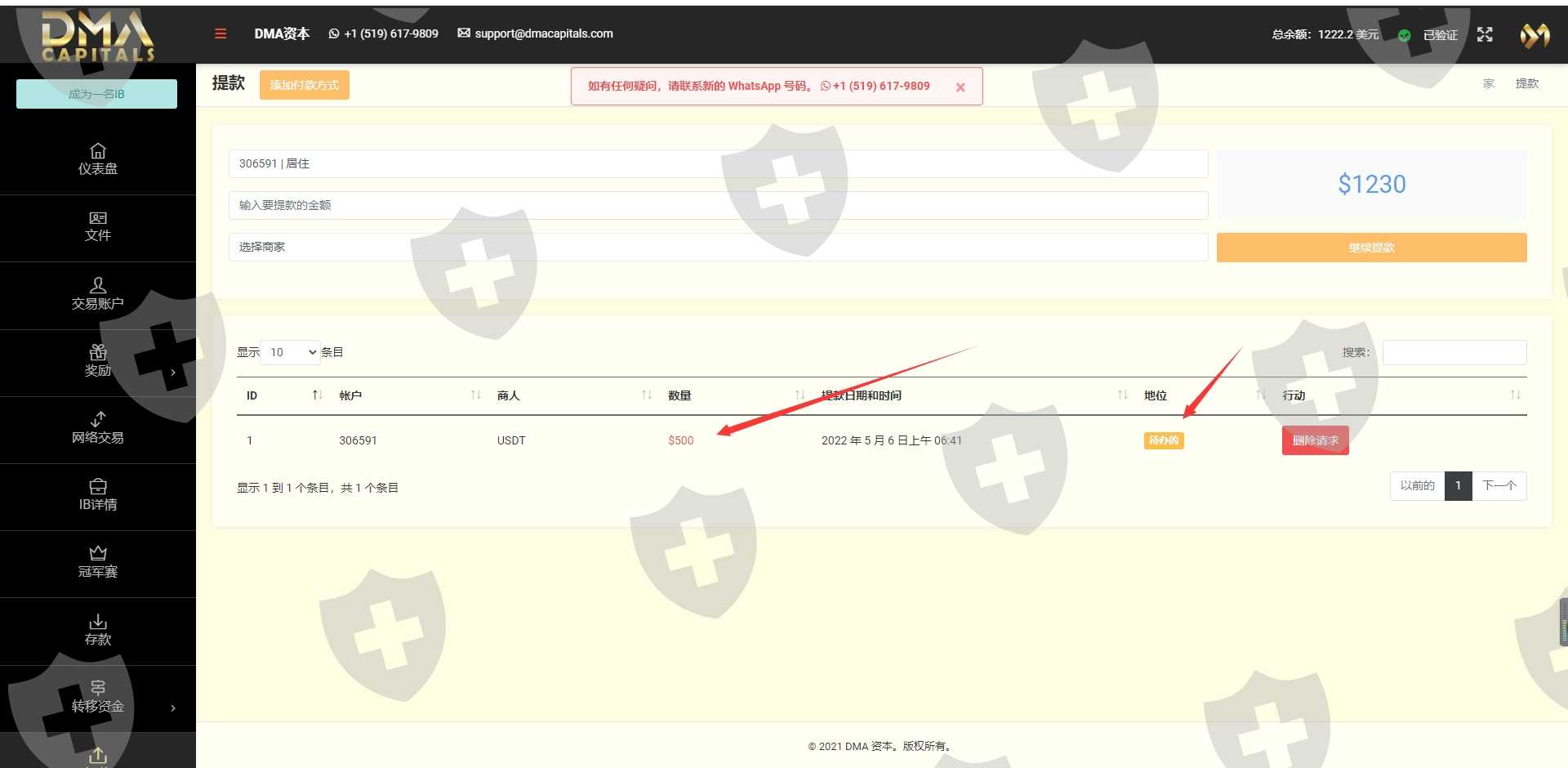 黑平台,入500U赚771U,不给出金 黑本金,账户和个人后台全部删除掉,提交出金申请,平台 删除出金订单提交
