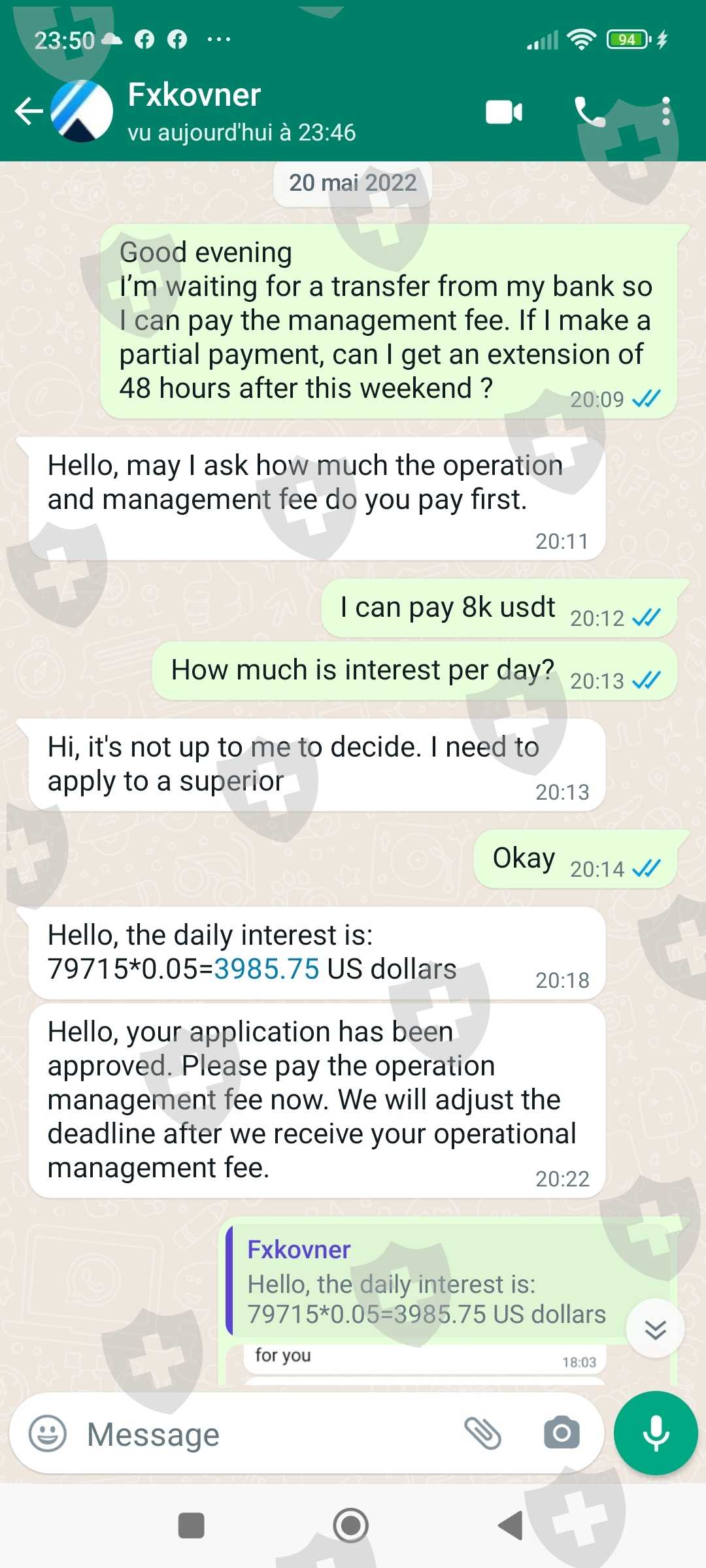 经过几个月的交易,达到了4100166美元,我提取了15万美元。但这次提款的条件是要支付账户金额2%的操作费,所以要在14天内支付83,700.75美元,否则每延迟一天就要受到5%的处罚。当然,客服人员告诉我,操作费不能从我的账户中扣除,必须由我自己用USDT支付。这些费用没有出现在网站上的任何地方,也无法通过协商来达成这笔款项的结算。然而,结算完成了,其中最大的一笔是与第三方账户的63000美元,但汇款被拒绝并退回账户。与一个注册账户的20.700,75美元的结算没有返还给我,现在,服务客户向我要63000美元,没有延迟限额费用。这些行为是不正常的,客服人员告诉我,这个问题是我的,必须通过自己解决。