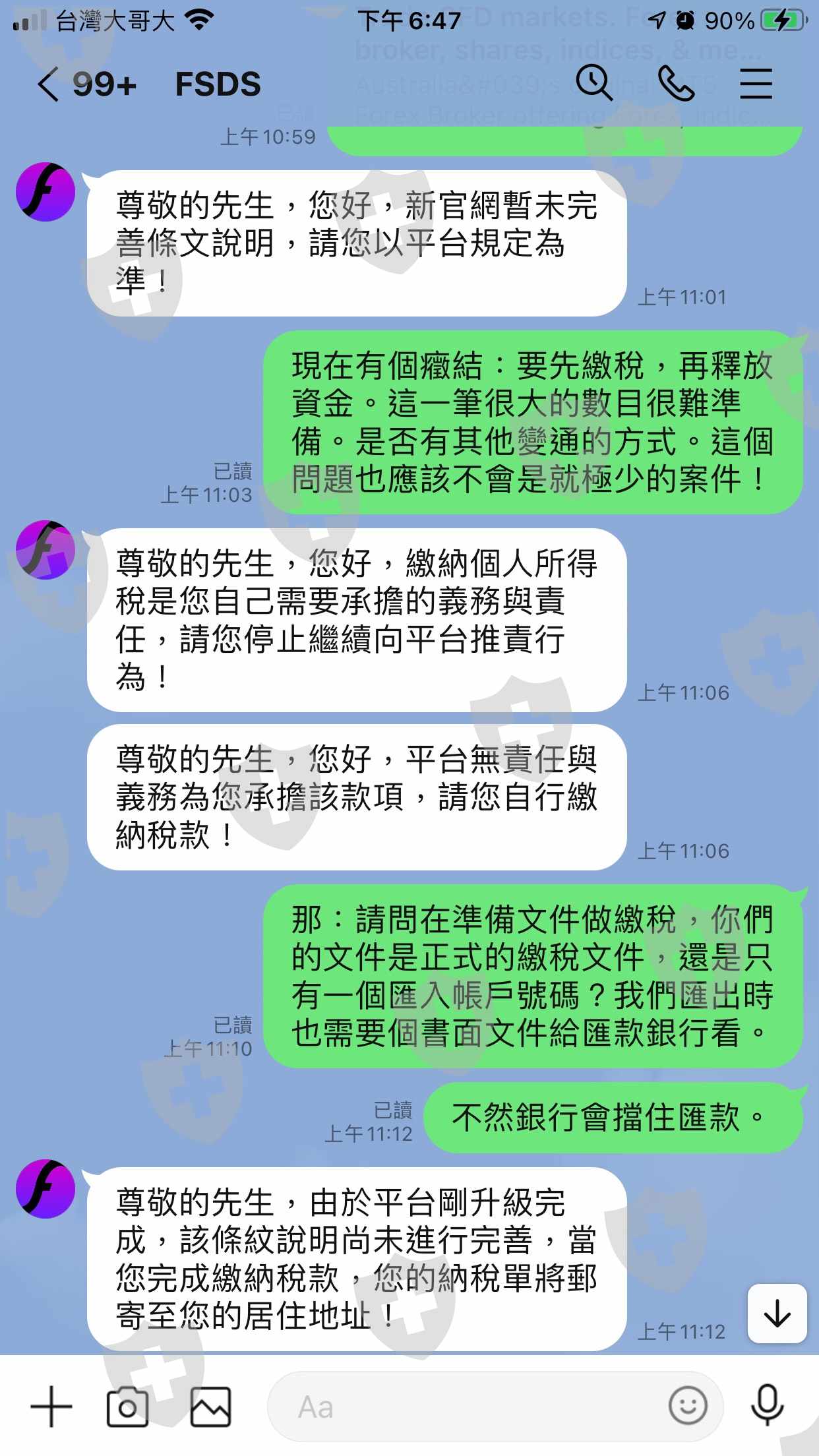 這是經過九次入金與多次在外匯與期貨市場的交易結果。在要求出金時客服對來文: