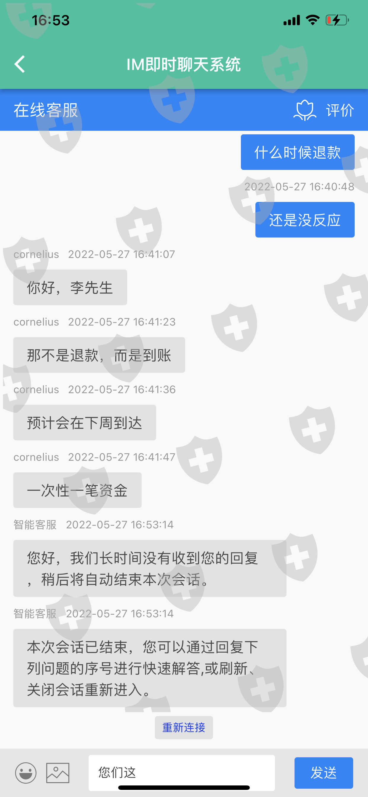 沟通一个月,还是找各种理由,开始是什么审核,跟着账号就被封了,拉黑,都无法登入,最后说退还本金,结果是本金也不退,各种理由,只有你想不到的理由……天天说这个做了马上到账,要么就是下周到账,直接上截图吧,这个平台入金了就一分也别想提出来……目前平台还在苹果商城运行