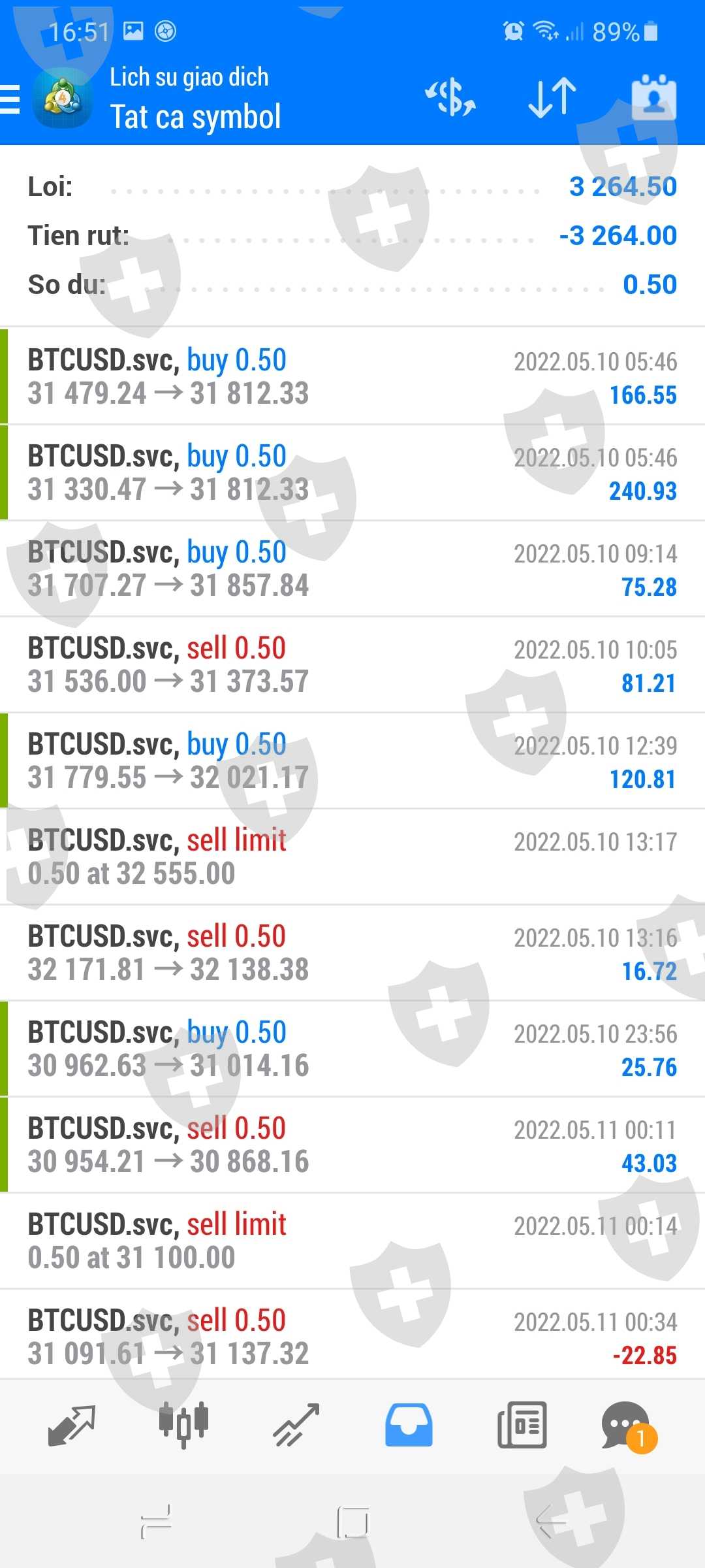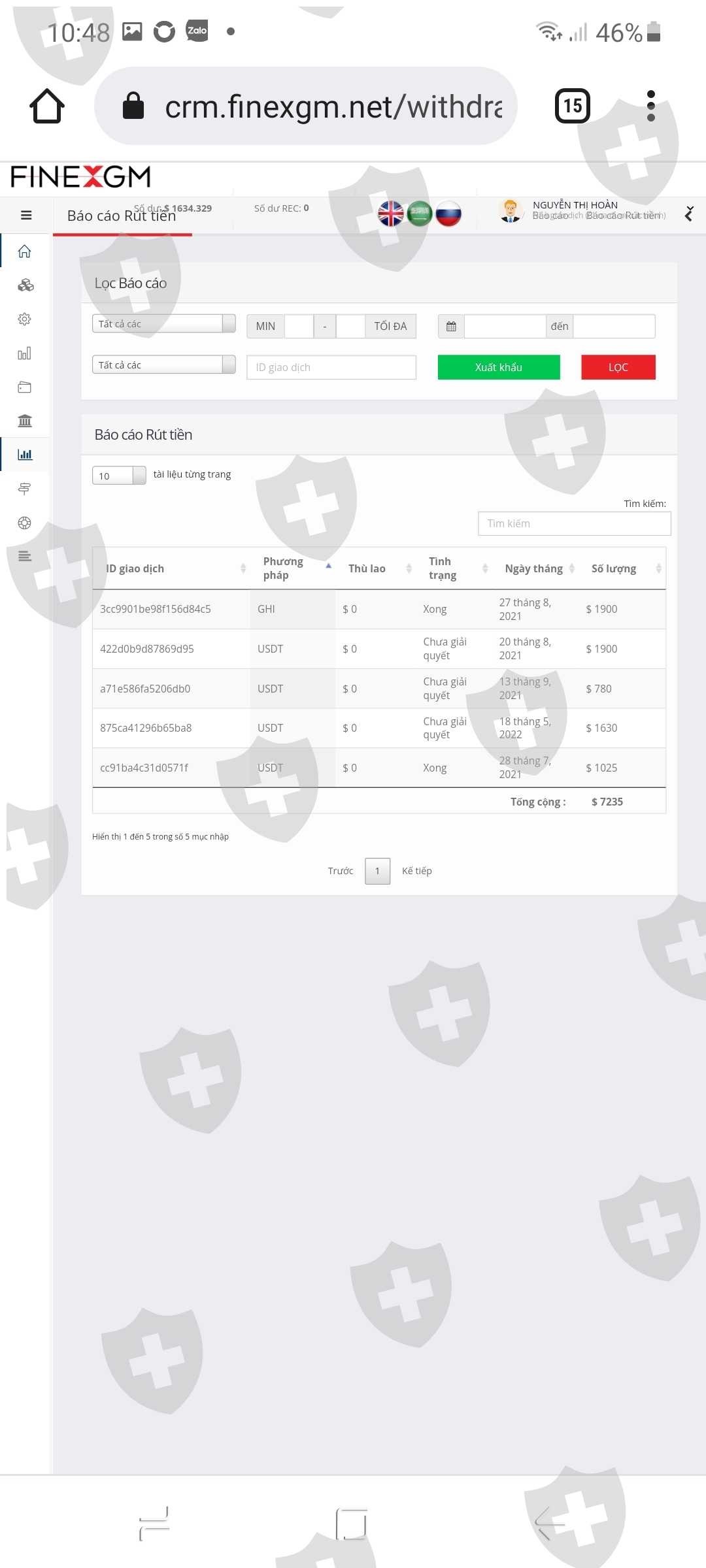 Tôi giao dịch 10/5/2022 đến 16/5/2022 lãi 3264$ và đạt 32,5lot. Tôi rút từ MT4 về ví finexgm 3264$ và rút ra ví ONUS của tôi từ ngày 18/5/2022 đến giờ tôi vẫn không nhận được tiền.