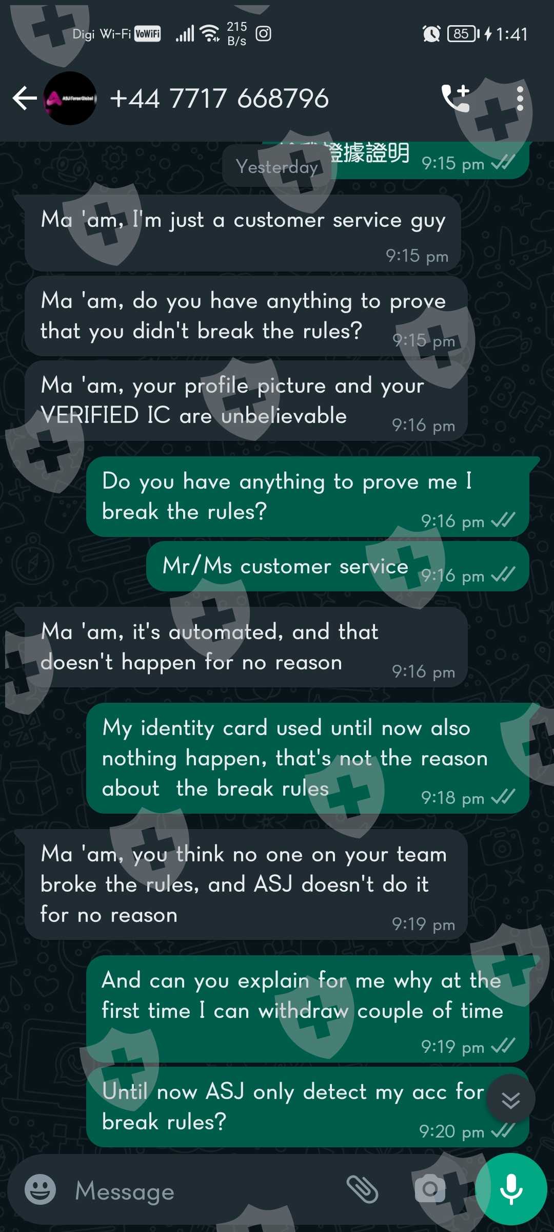 在我们的谈话中ms/Mr 客服说是Chang Yee Ling违反了asj规则,但他们无法向我证明