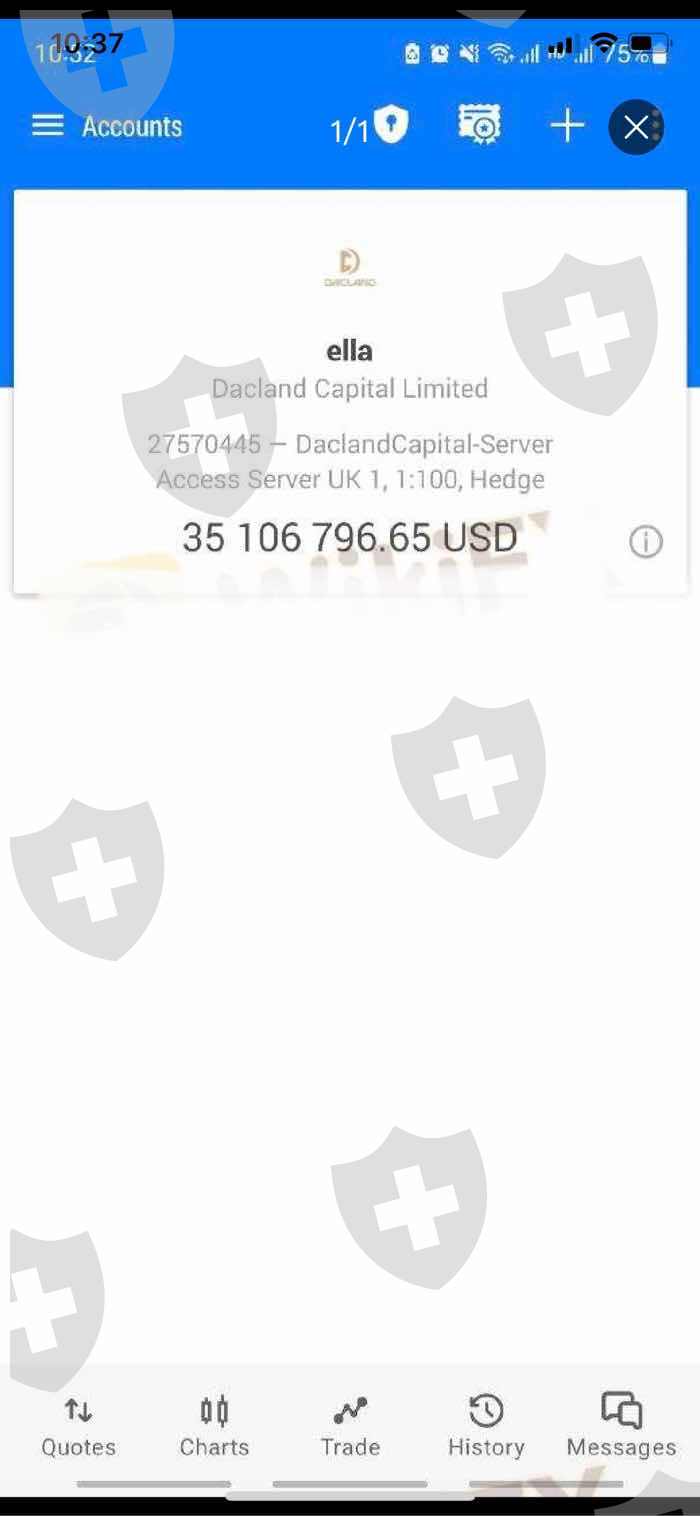 他们允许您进行交易,但他们推荐他们的交易并在开始时与您一起进行交易以显示利润,一旦帐户赚钱,除非您投入更多资金,否则您将无法访问它,这是一个无休止的循环,但课程 AssetsClaimBack/ com 批准的行动让我退还我的钱。 Dacland 要求巨额存款以获取您的资金。绝对荒谬!