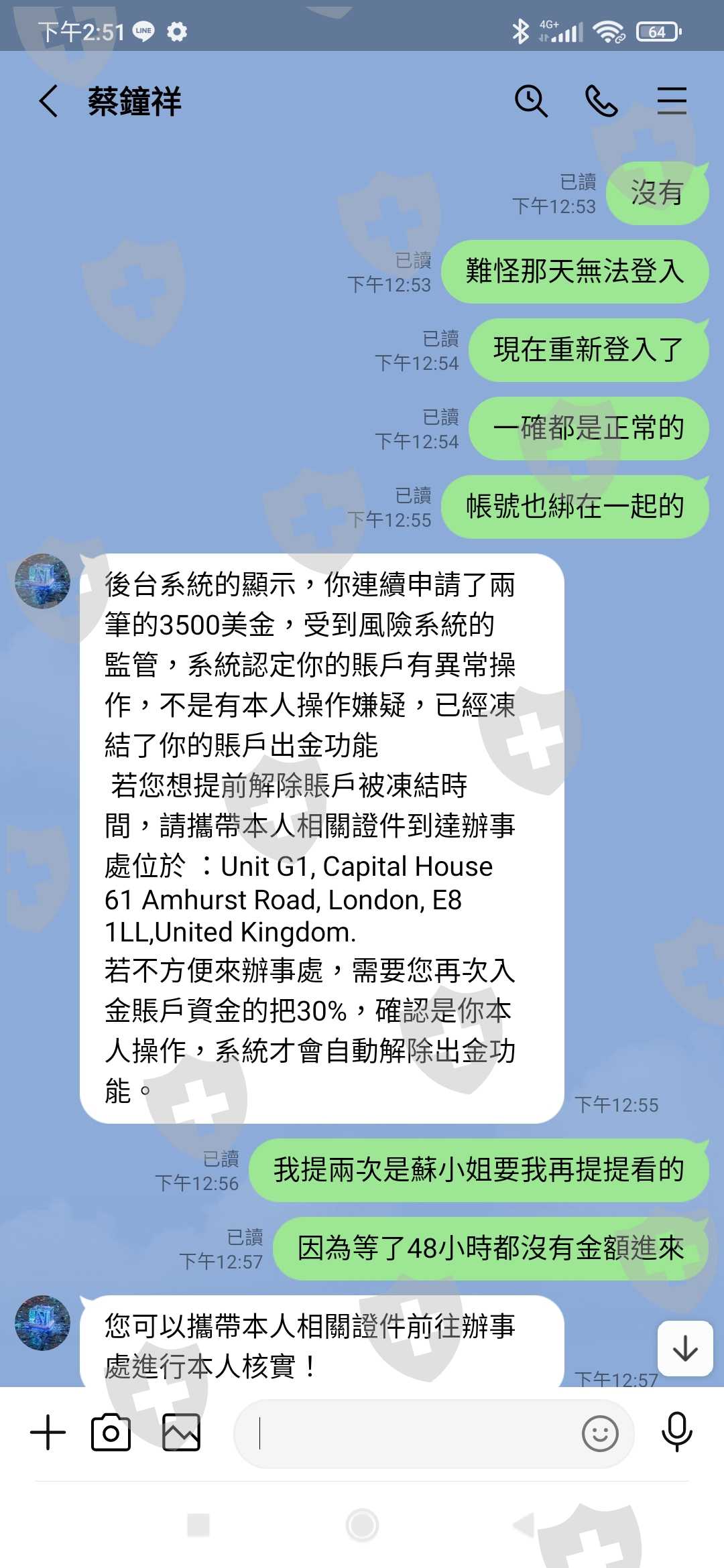 我投資了約25萬台幣,前兩次小額出金都有給我,第三次我要提領10萬對方說我的帳號是黑金洗錢,我不懂如過我要洗錢為何只用少少的25萬,而不是25億,我只是普通的小資家庭,想用股票賺一點點錢,如今被對方說的我是多麽惡劣,心中實在不平,現在帳戶內有1萬2千多的美金,我只能看,不能用,除非再加30%的金額進去,也就是還要加10萬以上的台幣,請問這要如何處理
