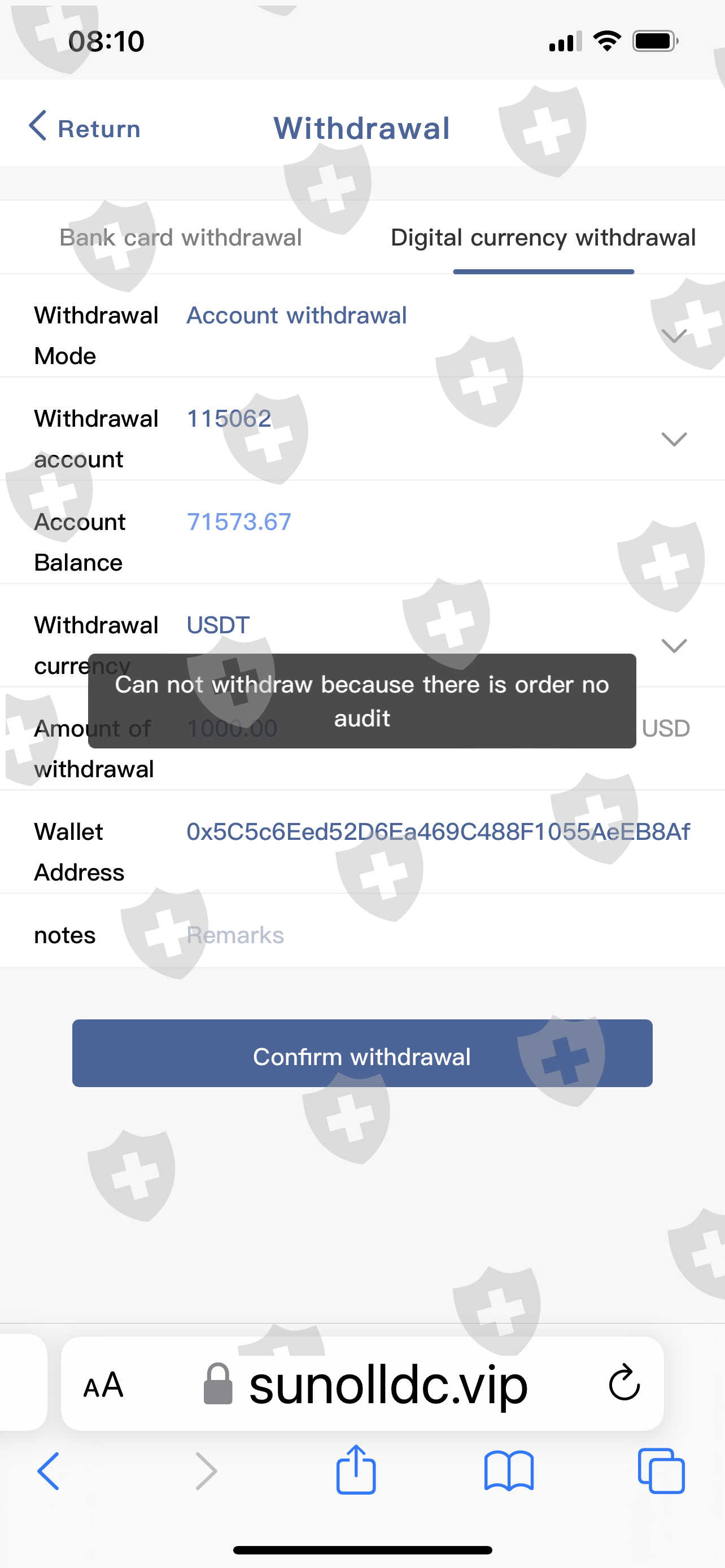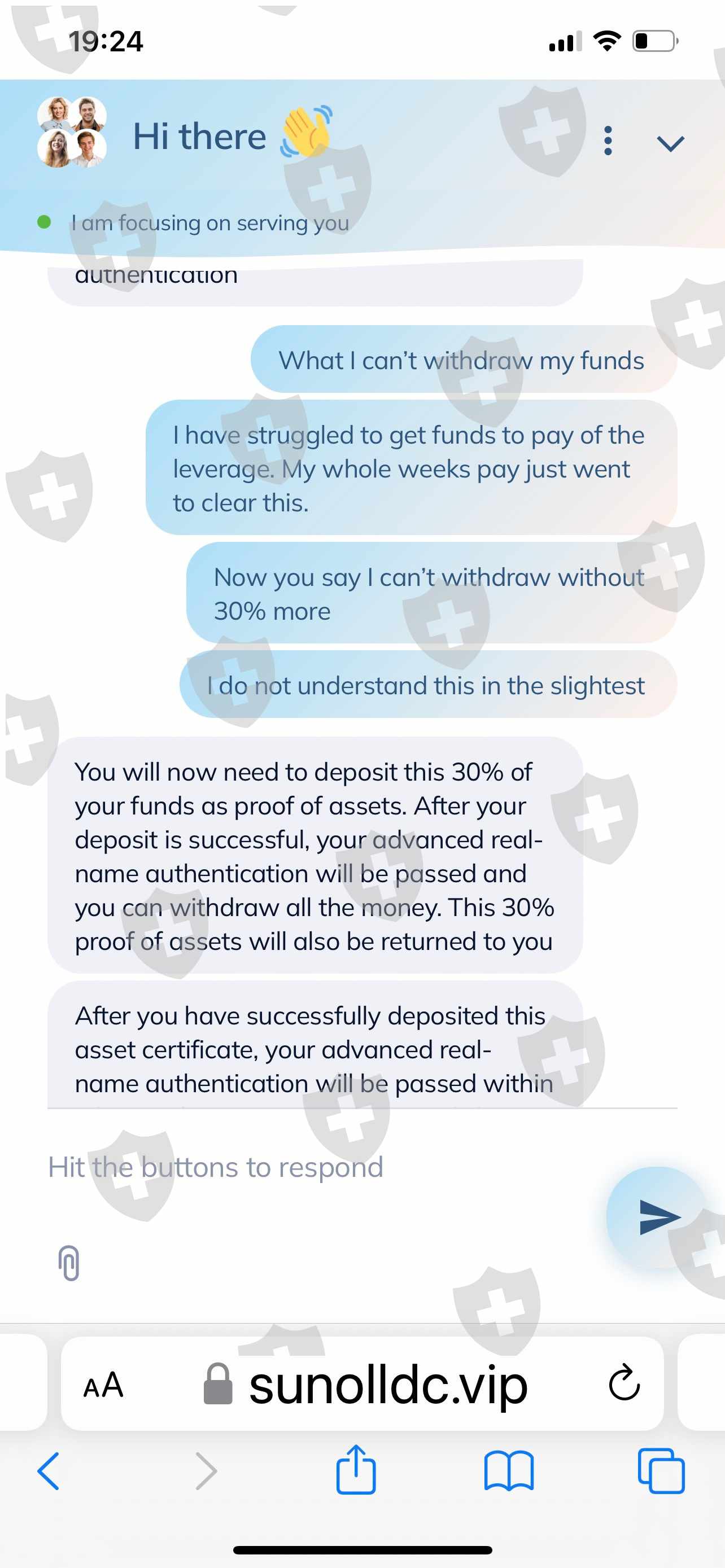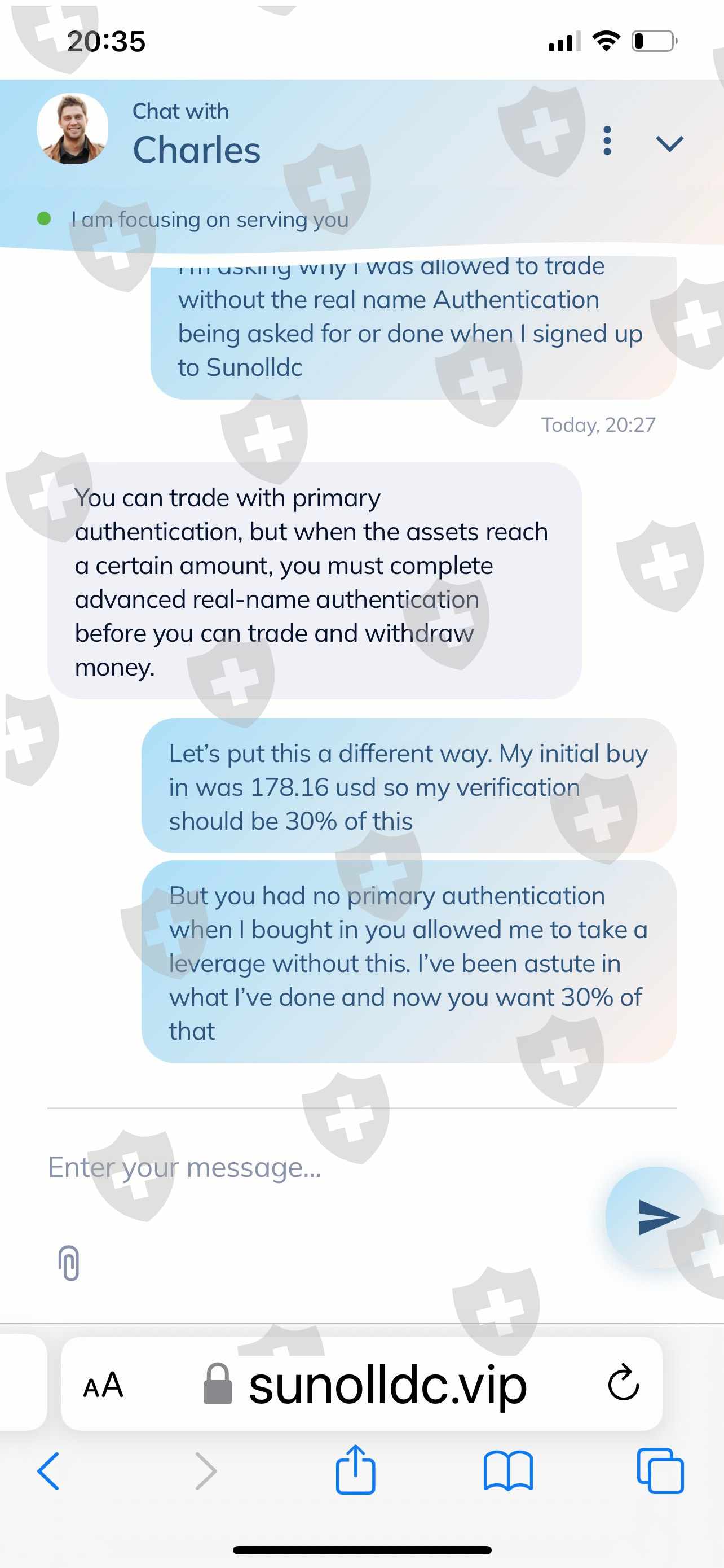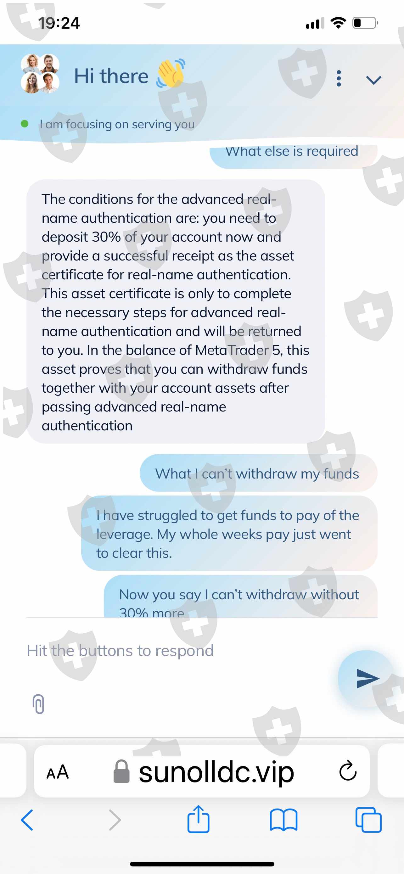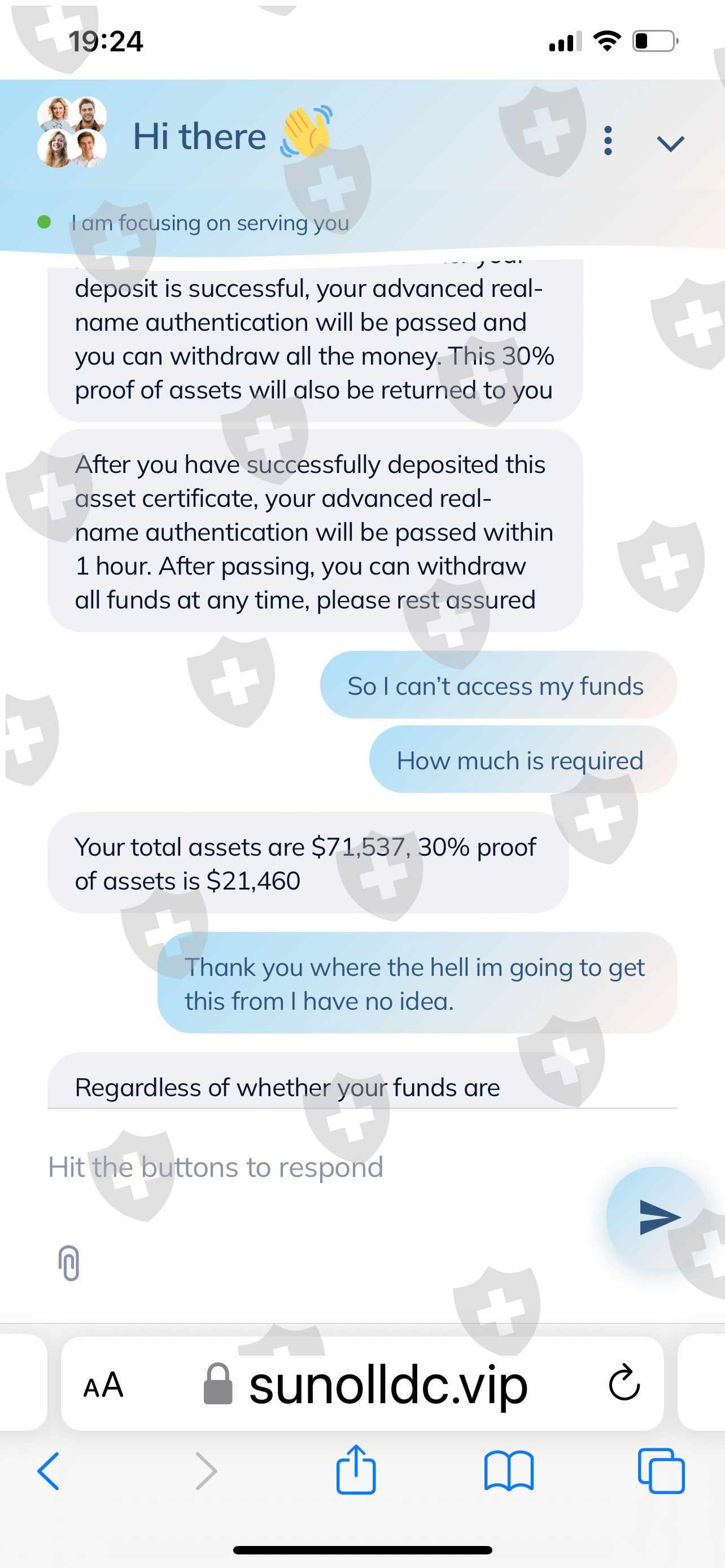 Sunolldc are asking for another deposit if $21471.00usd to verify my asset. I have asked for them to supply a copy of there terms and conditions and they won’t. just tell me to find it myself.