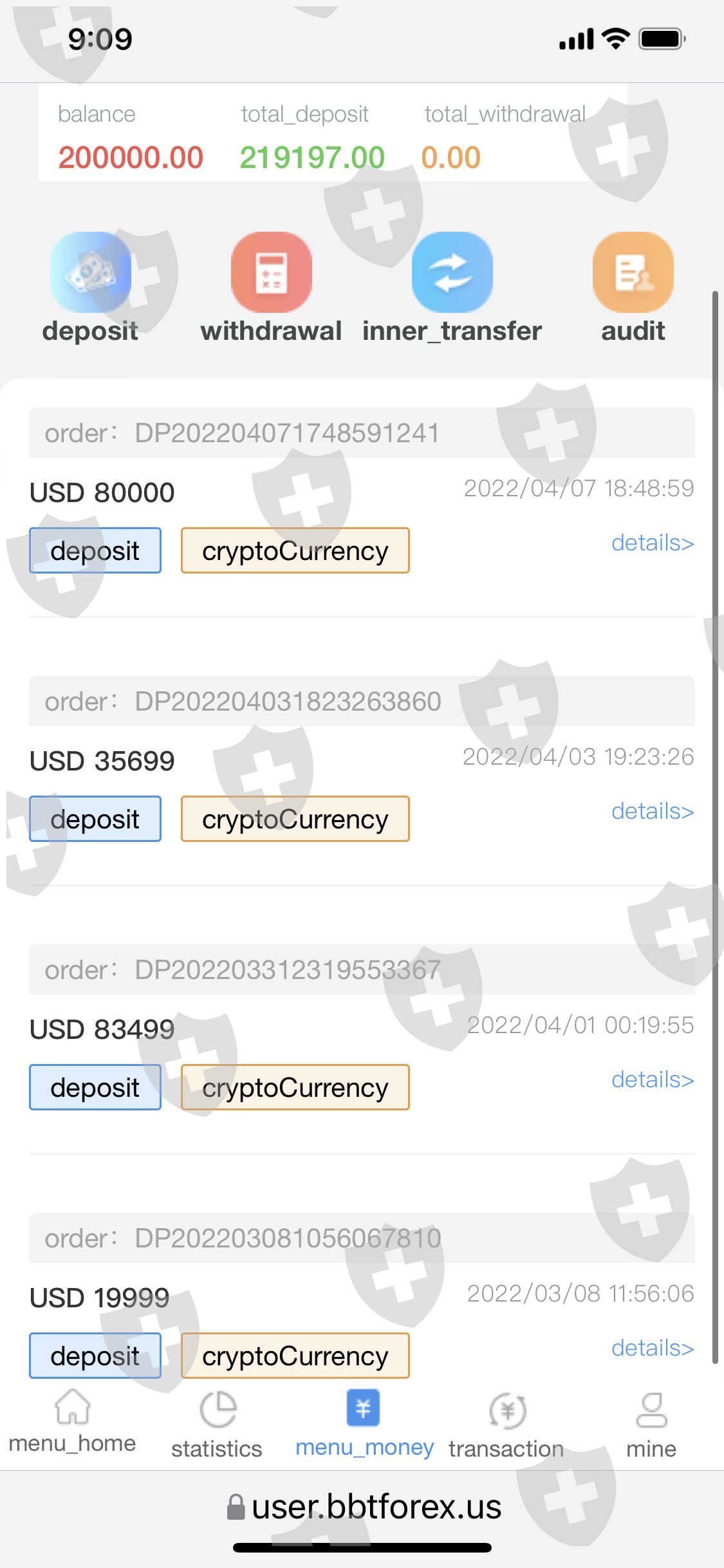我在BBT金融服务交易商进行交易,但我无法提款,然后他们从洗钱活动中提取了我的资金并冻结我的帐户,并要求我在存款后支付10%,也就是119181.8 的保证金,然后我仍然无法提款,然后他们问我要开vip账户,我存入钱后必须存入$80000,现在他们从我的账户中取出资金涉及非法内幕交易,所以我需要再存入$ 83256.64。并且只给 5 天期限,否则我的交易账户将无法继续使用