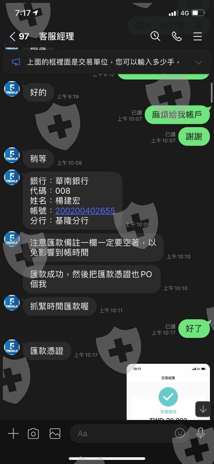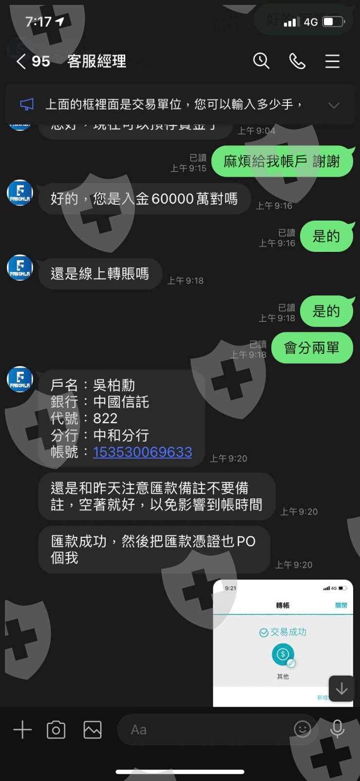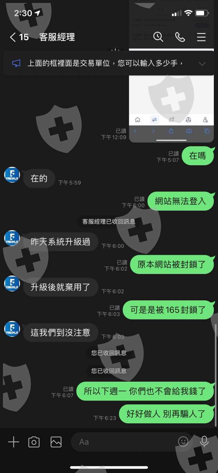由投顧群組推薦mt5軟體,及此交易平臺,以購買原油投資,但出金一直找理由延遲,每三天換一個理由。前後已匯款16萬臺幣入金,目前已發現被詐騙投資,客服經理已把我封鎖不回應。目前會員網站已更新www.fasonlacrm.cc/mobile/user/login請大家不要再上當~~~
