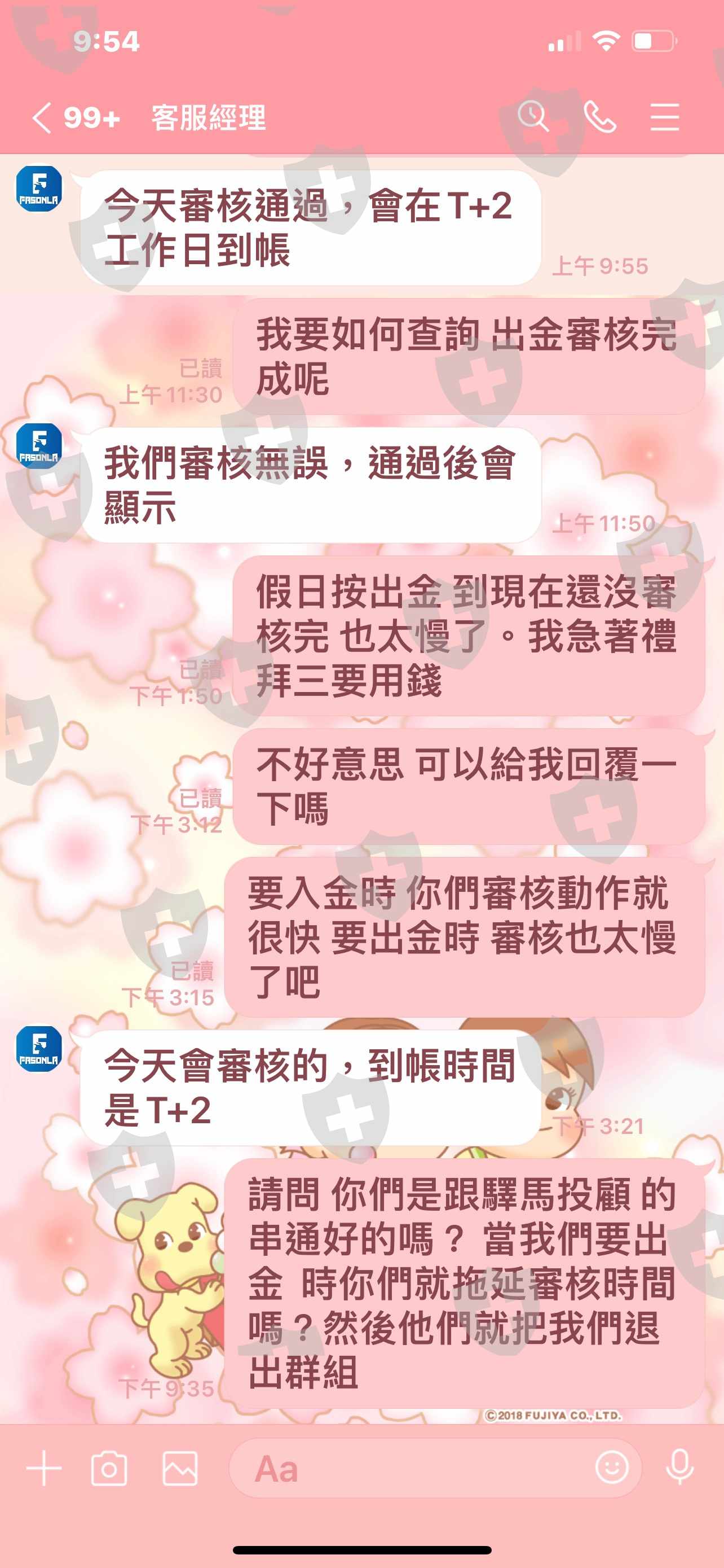 要出金時 一直說會審核 但是到晚上都沒有審核。結果就把我們退出群組。