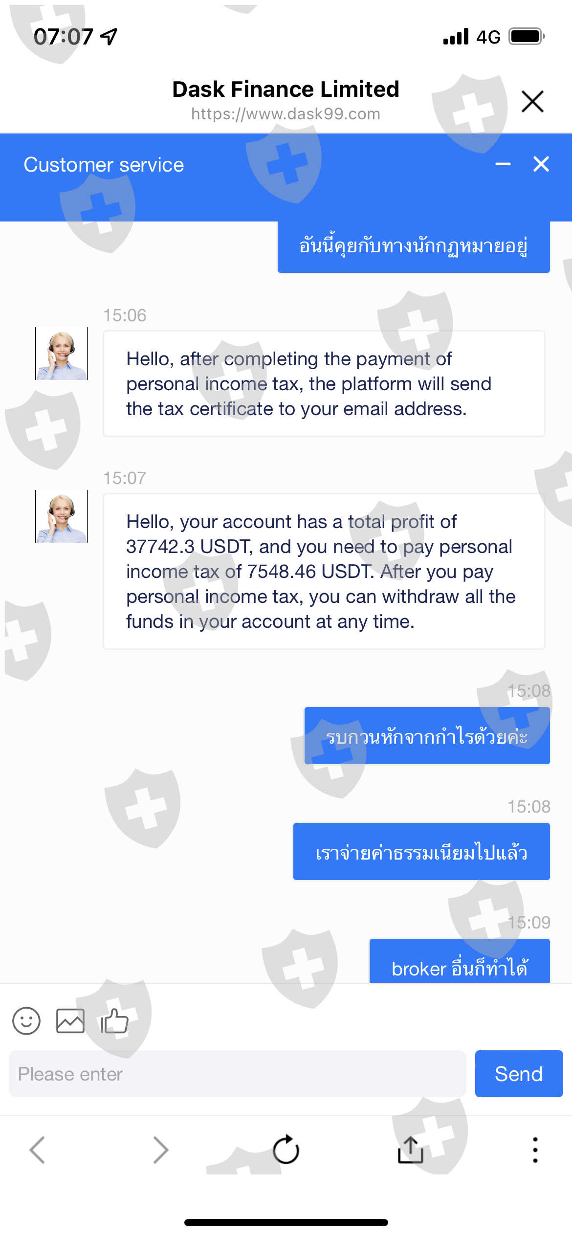 我交易了我的资本加上利润 44921.79 我们,但它不允许我退出。说您必须先缴纳 7548.46 us 的税款,然后才能提款。但是之前有手续费1700us左右,经纪商不允许提现。并表示系统将于6月15日关闭
