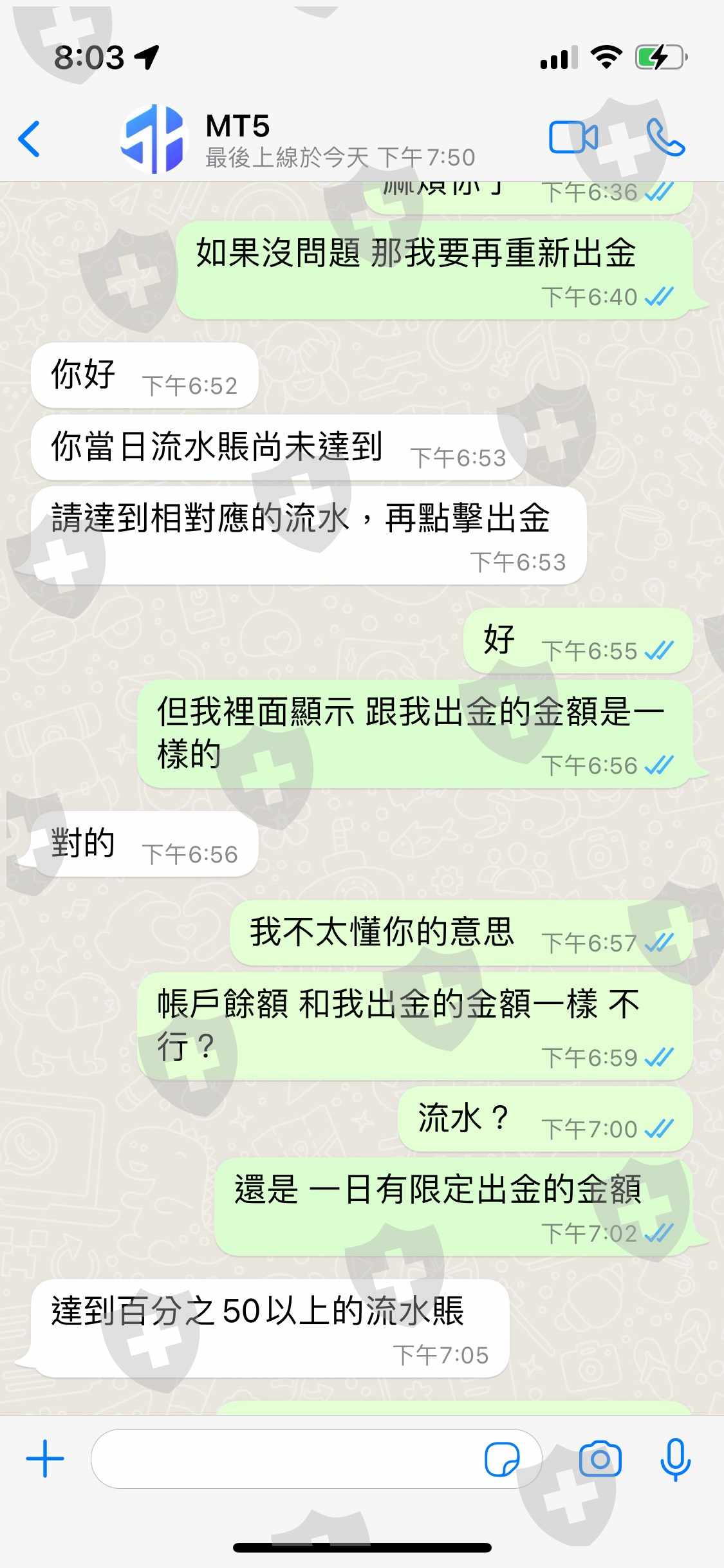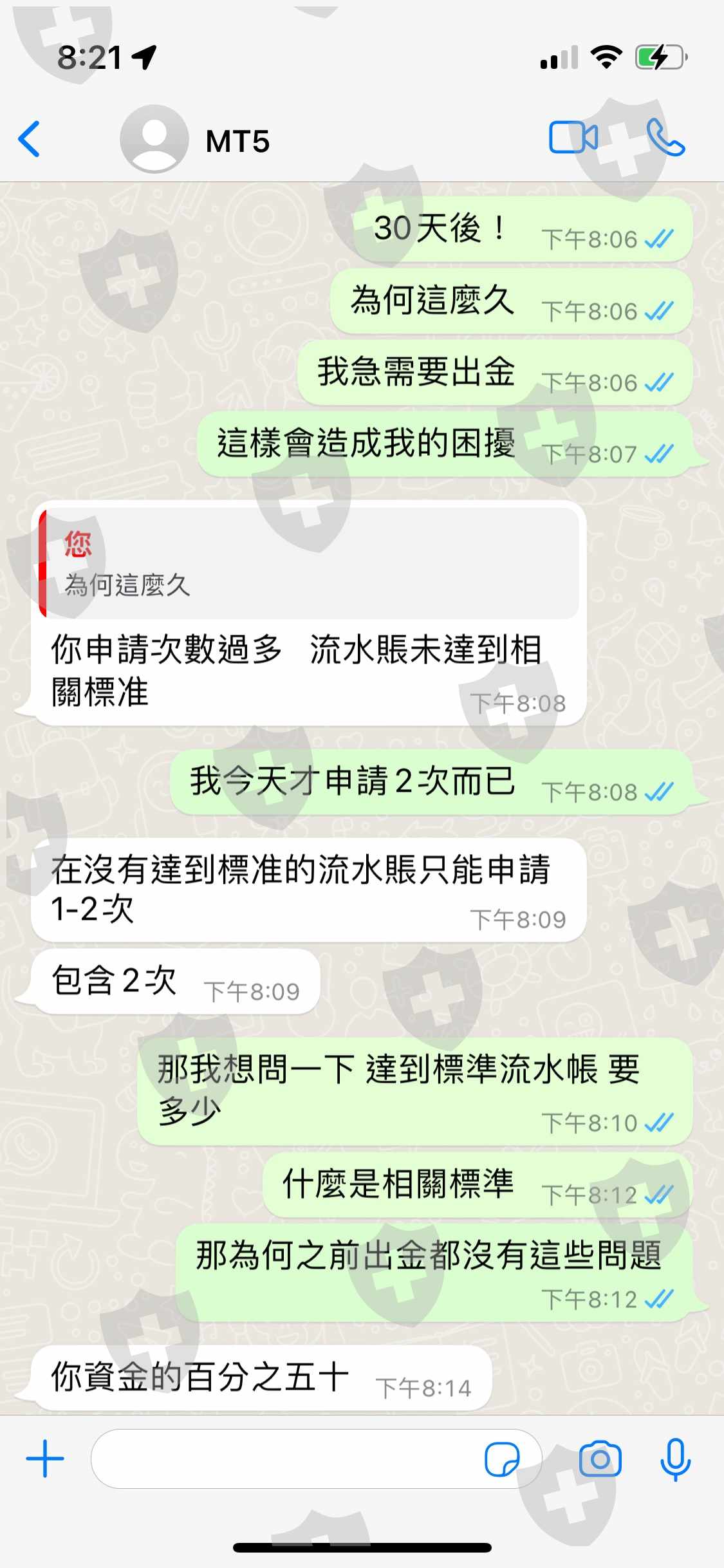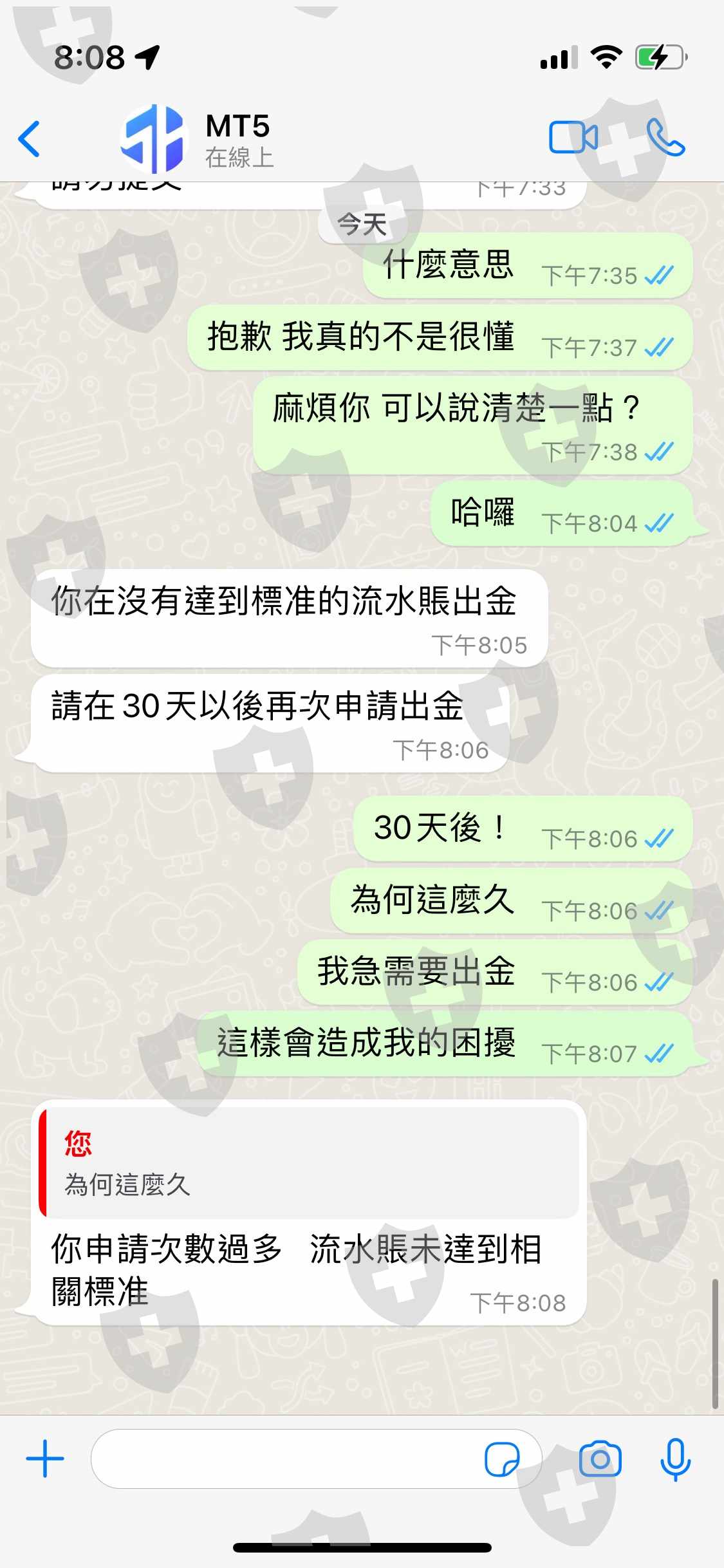 大概3月左右加入會員期間出金都沒問題但是上禮拜出金 不能出金客服說我在沒有達到標准的流水賬出金我在沒有達到標准的流水賬出金請在30天以後再次申請出金不懂為何這次要出金會有這種問題