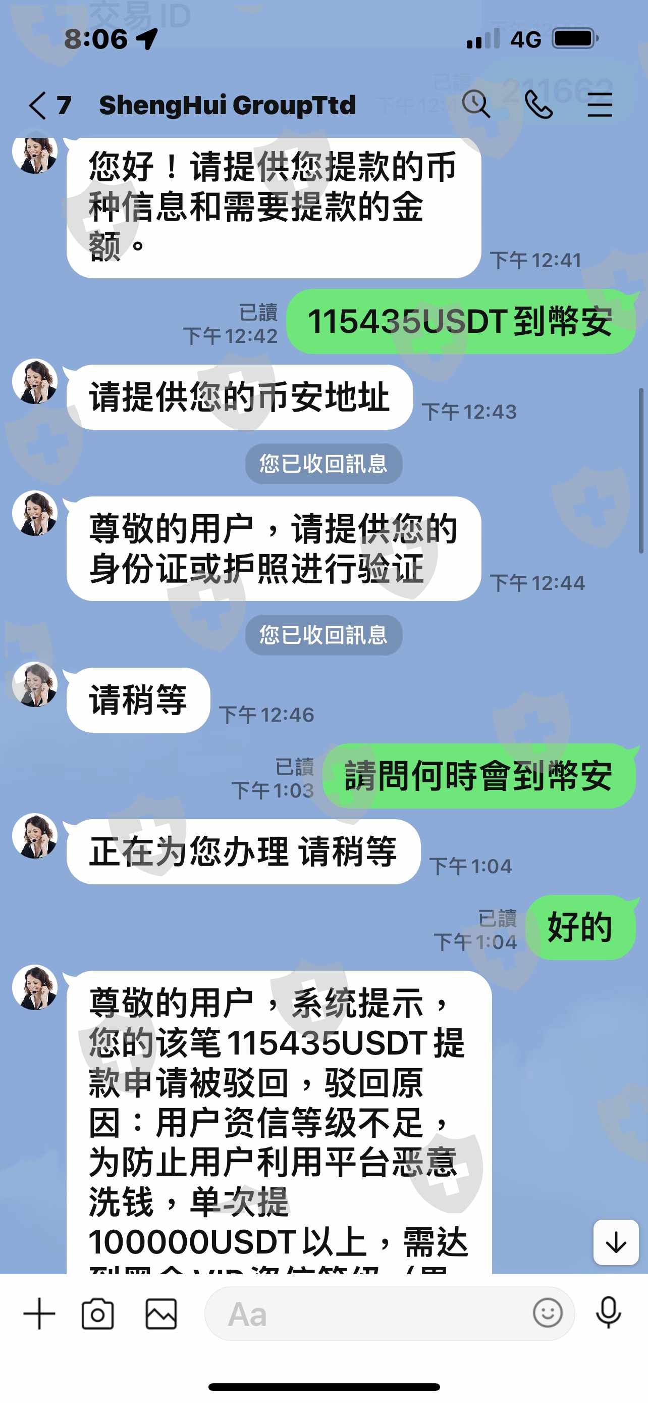 出金金額太高客服有責任預先告知,才叫客服,不是冠上洗錢防制法就直接凍結用戶的資金,還開出要補足150%資金,才能出金。經由這位網路朋友介紹,懷疑是同夥的詐騙集團,她也會提供高額的交易單給你看