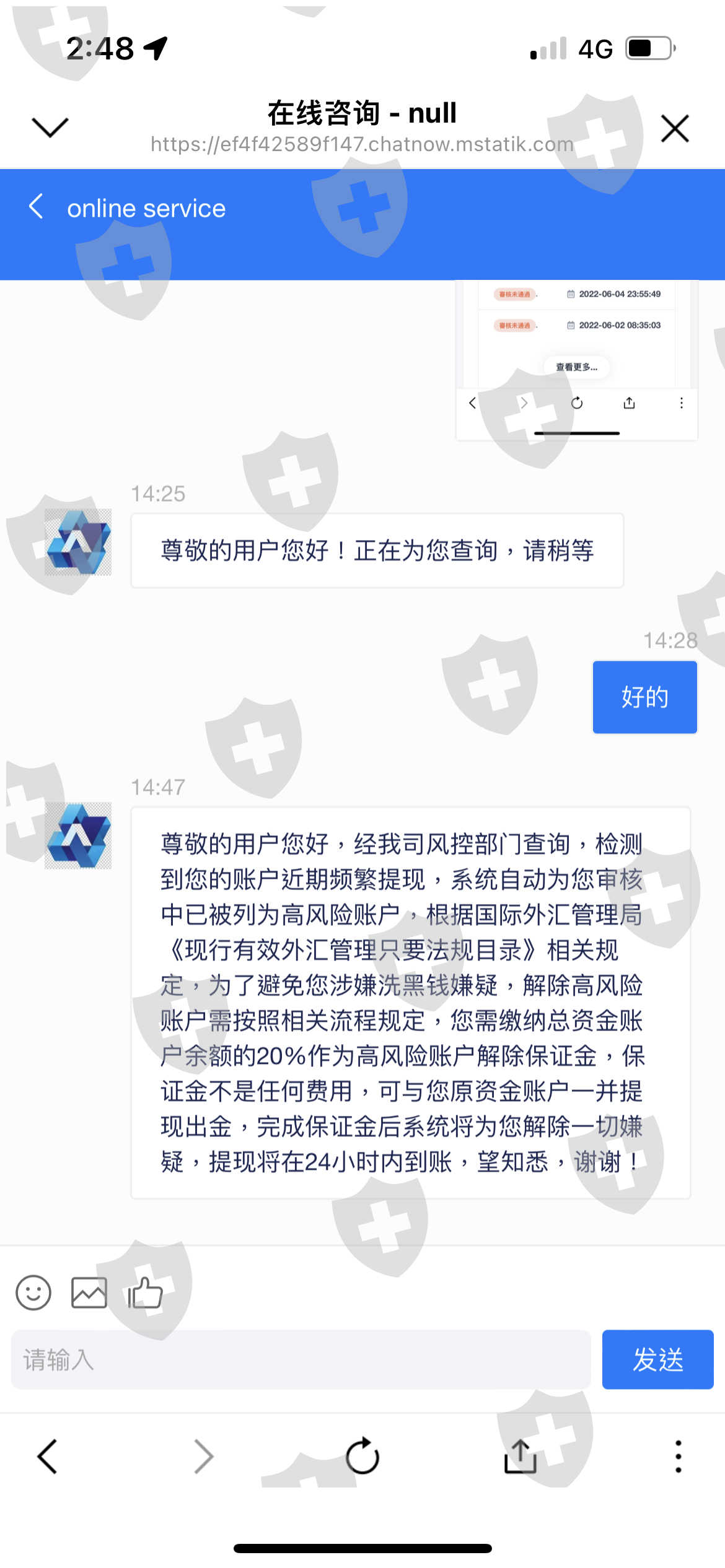 處在審核狀態,後續因頻繁申請出入金,需繳交保證金與稅金。