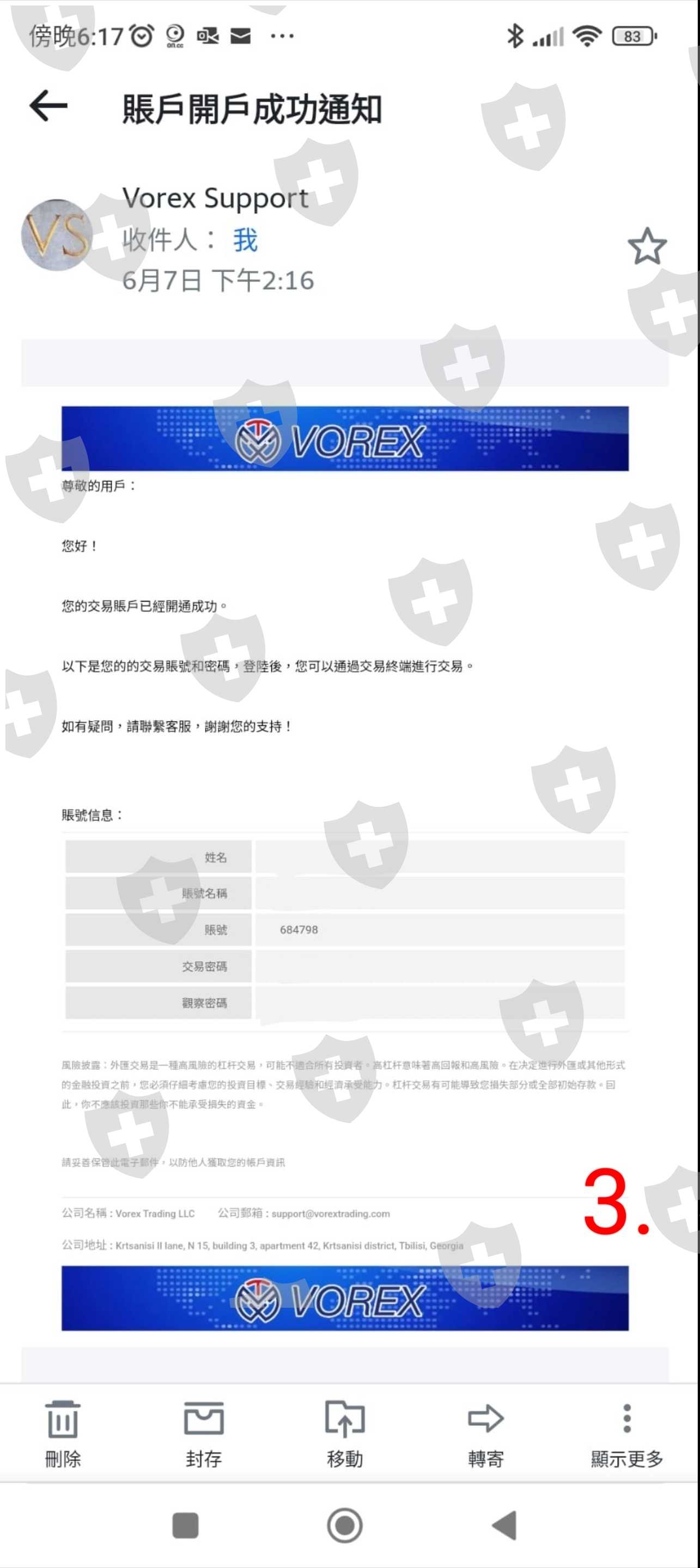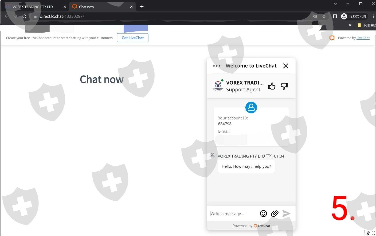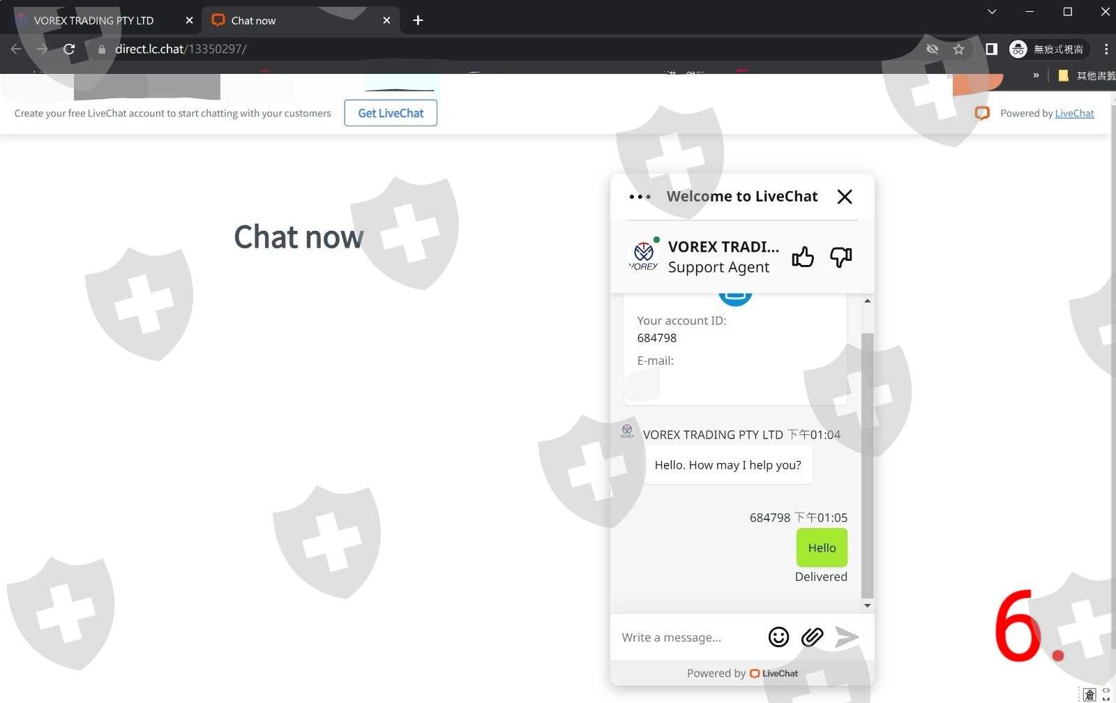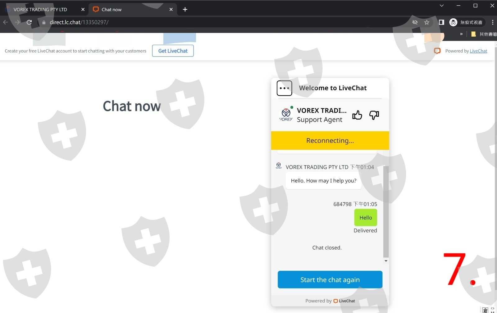 我在互聯網找到這間Vorex的客服(圖8.), 我提供賬戶, 客服説没有登記, 並非説我被騙了, 但若是被騙10萬美元, 可以嘗試申訴的, 我只是$7500美元, 叫我努力賺回算吧。