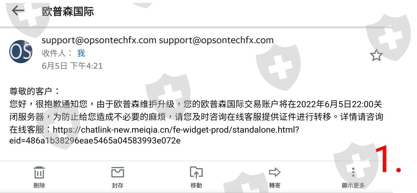 在2022年5月5日開了一個在OPSON INTERNATIONAL TECHNOLOGY SERVICES CO., LIMITED https://ka-fen.com户口(開戶是在facebook認識的1個人(戲子(那個人)),現在已經失聯找不到, 人間蒸發了), 但是在6月5曰下年4時左右收到email(圖1.), 通知我要在當晚10時前從下面的link到客服提供証件轉移, 因為要維護升级, 由於當天我太忙我忘記了, 之前在OPSON(圖2.)這個戶囗是可以出金, 太約出入金及交易都是3-4次左右。