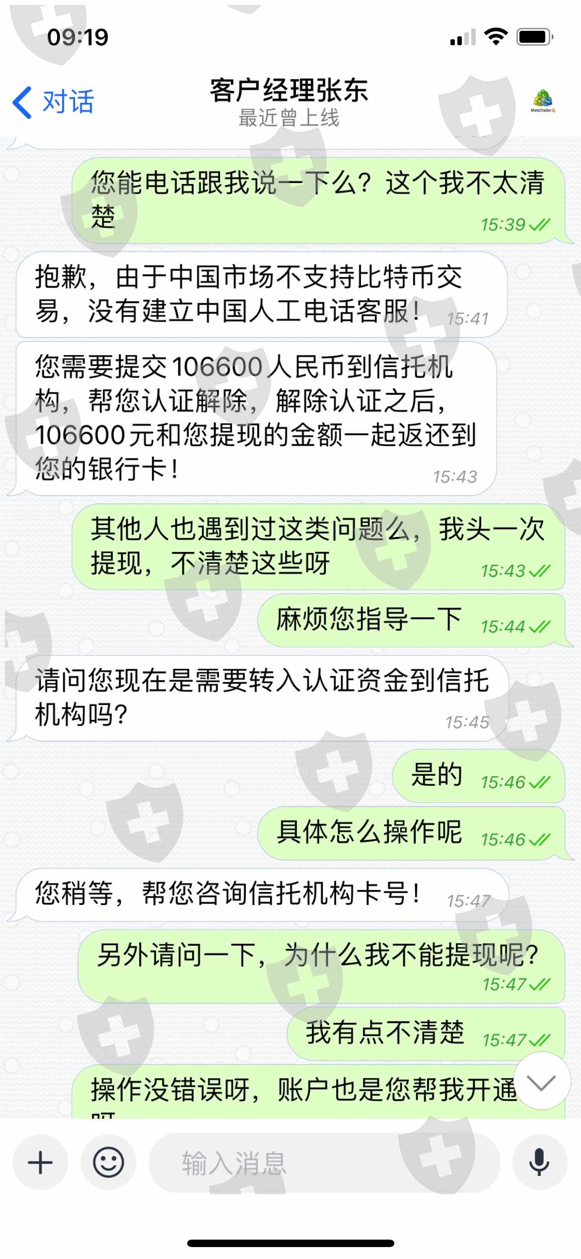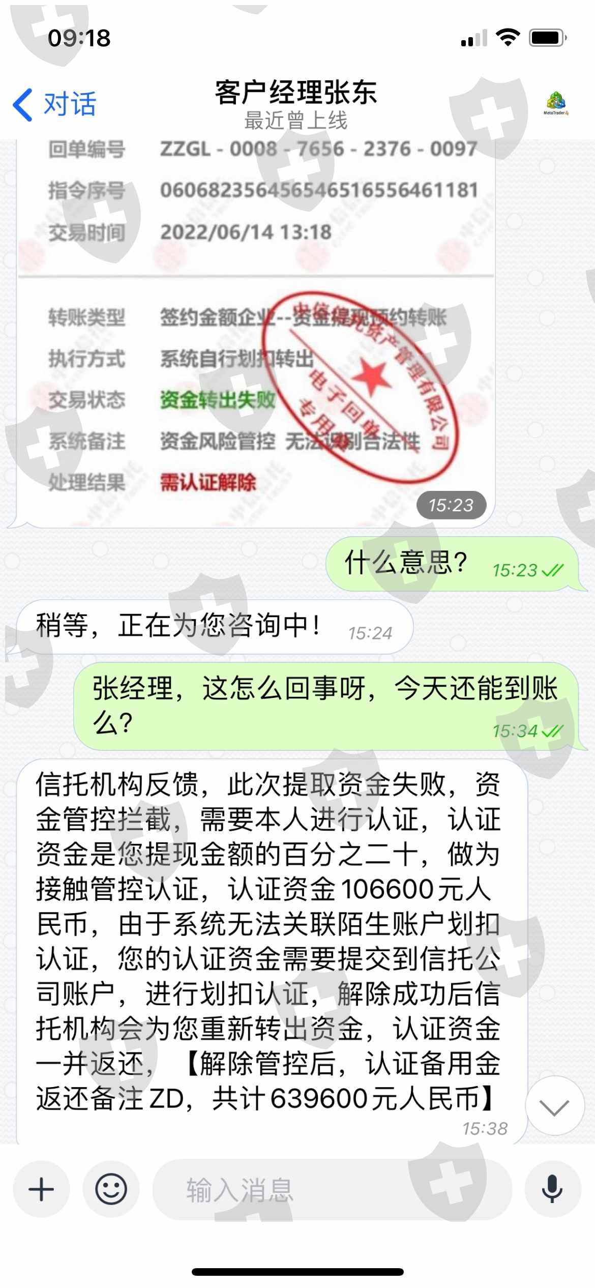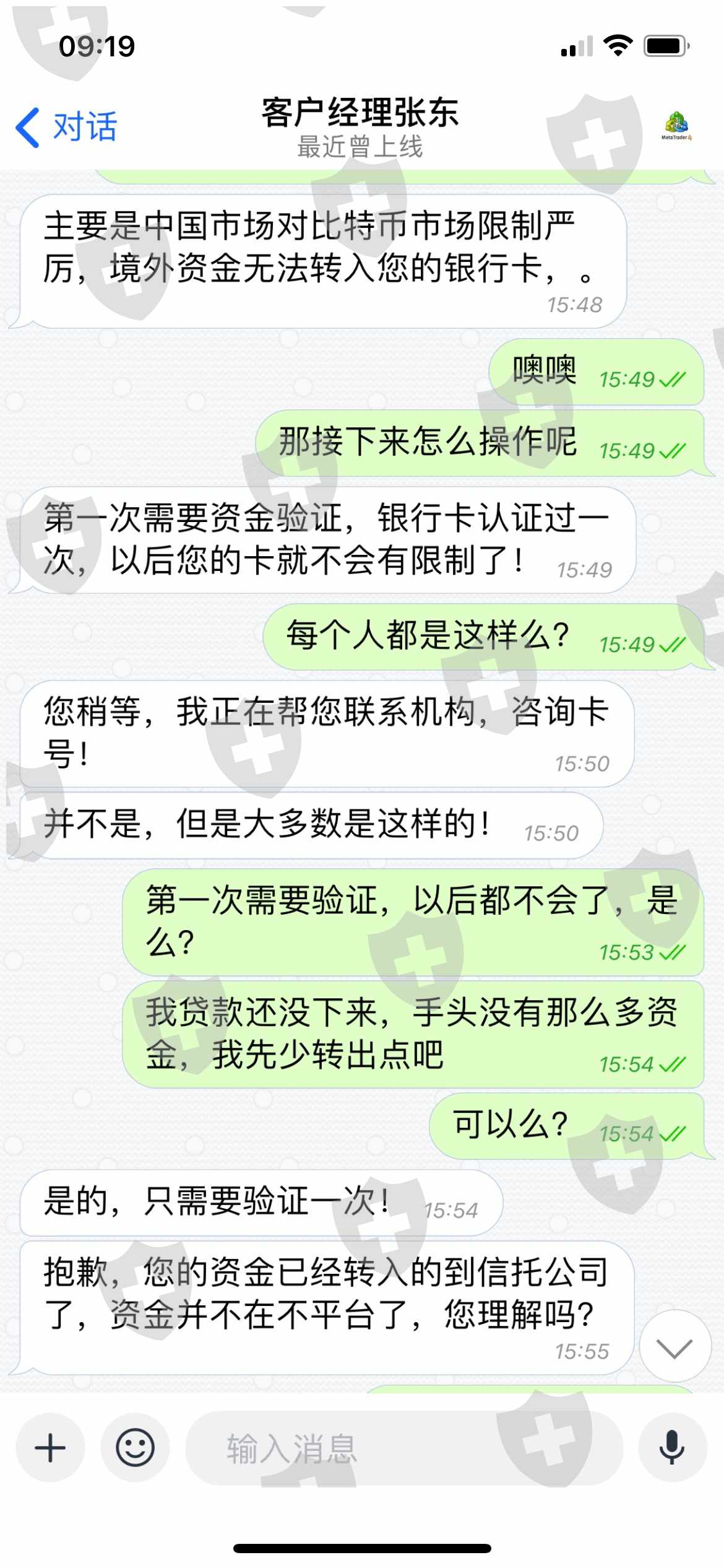 提现8.2万美金,迟迟不到账,联系客服经理张东,客服经理说要缴纳20%的认证金,后取消提现,账户被冻结。再联系客户经理,把我拉黑了,黑平台,割韭菜,现在官网进不去,资金被套,背负外债贷款,求帮忙解决……
