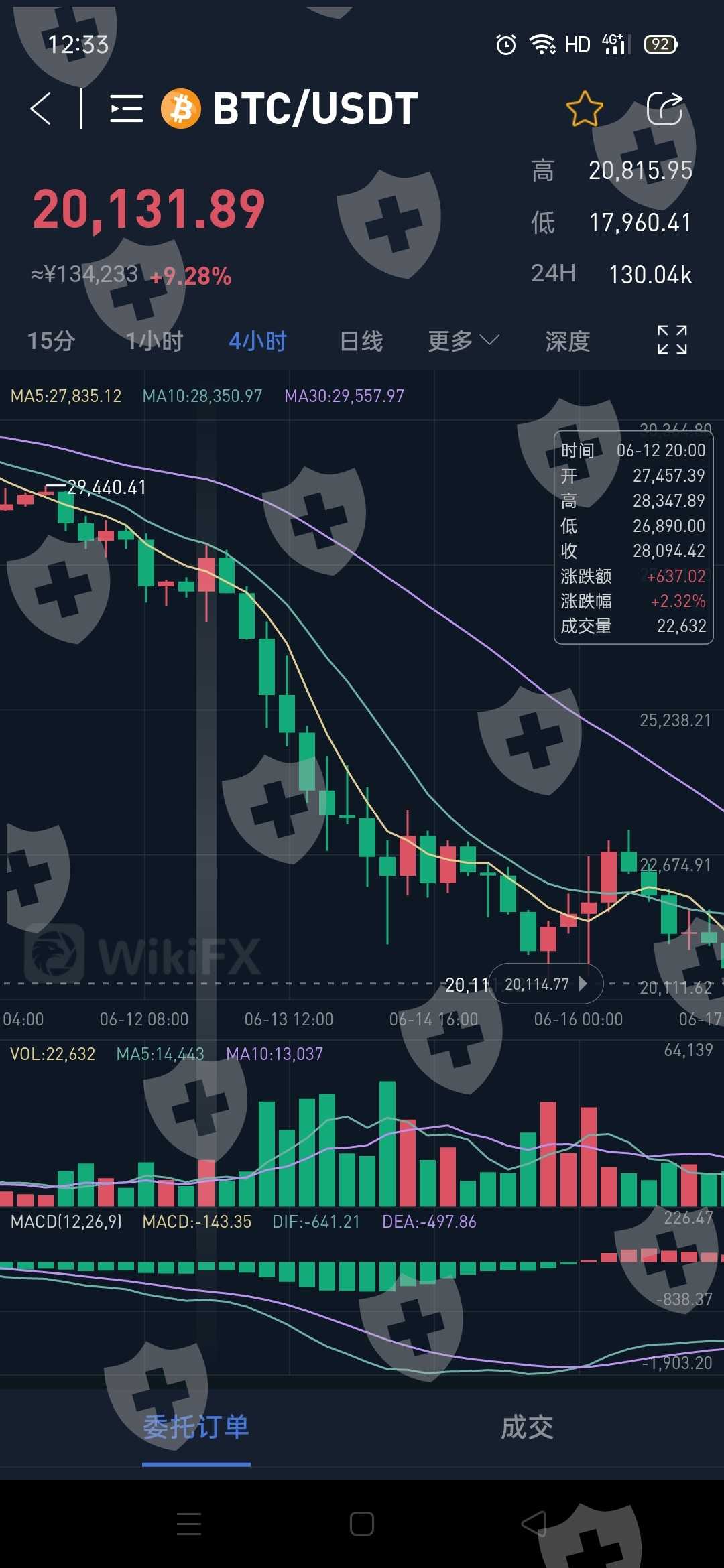 6.12当天晚上8点同时间对比图,一张天眼平台,一张此平台.结果此平台出现严重滑点