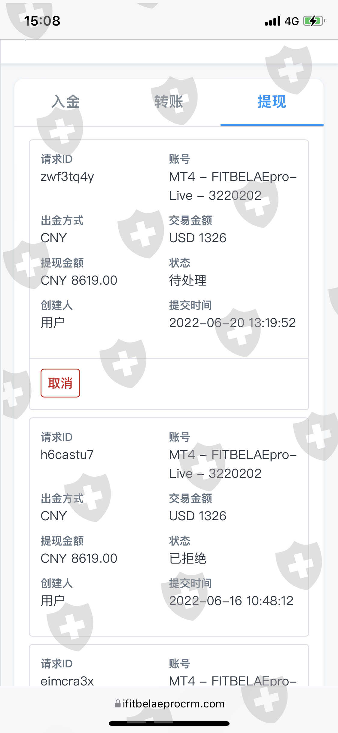 2022年4月20日左右QQ上被自称孔杰助理的静茹添加了QQ,拉进了一个股票推荐群,5月8日开通了一个核战金融圈的直播课堂,自称是宏创基金组织的炒股比赛,进入决赛的参赛选手分别是江开景、李森、刘勇、孔杰,每个账号每天有一票投票权,比赛结束票数最多的可以获得宏创基金提供的15亿基金为期2年的管理权。期初直播课堂每天都是分享大盘、讲解股票知识、推荐股票,后孔杰搞出了一个自称3倍牛股的私募票雪天盐业,江开景推出了自称可以超越3倍牛股的比特币盈利计划,随后孔杰也推出了比特币盈利计划。在课堂上和课堂通过静茹分享网址指导下开通了FITBELA EPRO账号,下载了电脑版FITBELA Epro MT4 Terminal软件和手机版MetaTrader 4APP,在静茹助理指导下学习怎么买卖比特币。课堂上孔杰根据资金大小划分为4个梯队,最低一档的梯队要求资金不少于资金5万美元。在6月7日20点之前的直播课堂带单过程中每单都是盈利,北京时间2022年6月7日20点江开景的课堂时间带单买多,买入价格为29300点左右,买入后在1分钟内出现了下跌6000多点并快速拉回的行情,课堂上很多人的账户都爆仓了。在查看新浪比特币价格和欧易比特币价格时,该时间段比特币的价格均不低于29000点,唯独只有推荐我们使用的软件出现了23000点左右的比特币价格。爆仓后我们找助理申请了账户清零,申请提现被拒绝,拒绝提现