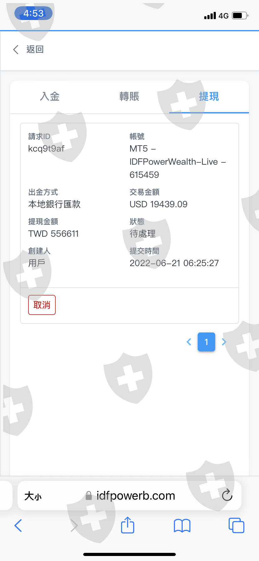 平時入金半小時就可以收到沒想到出金等了一天都還沒匯款