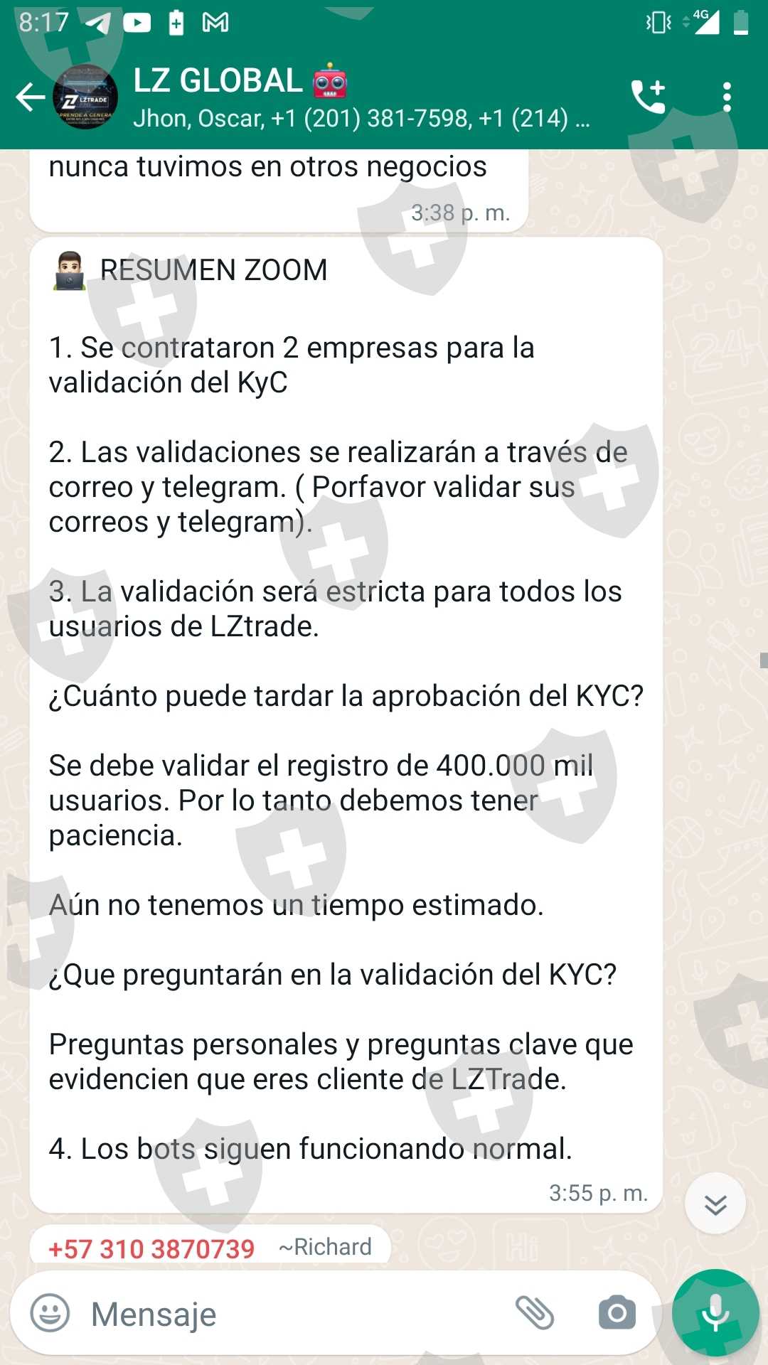 Dejo comunicado de los supuestos líderes que promocionan la captación de dinero para ese sistema donde comunican fichas novedades luego de una reunión con el supuesto corporativo de dicho sistema