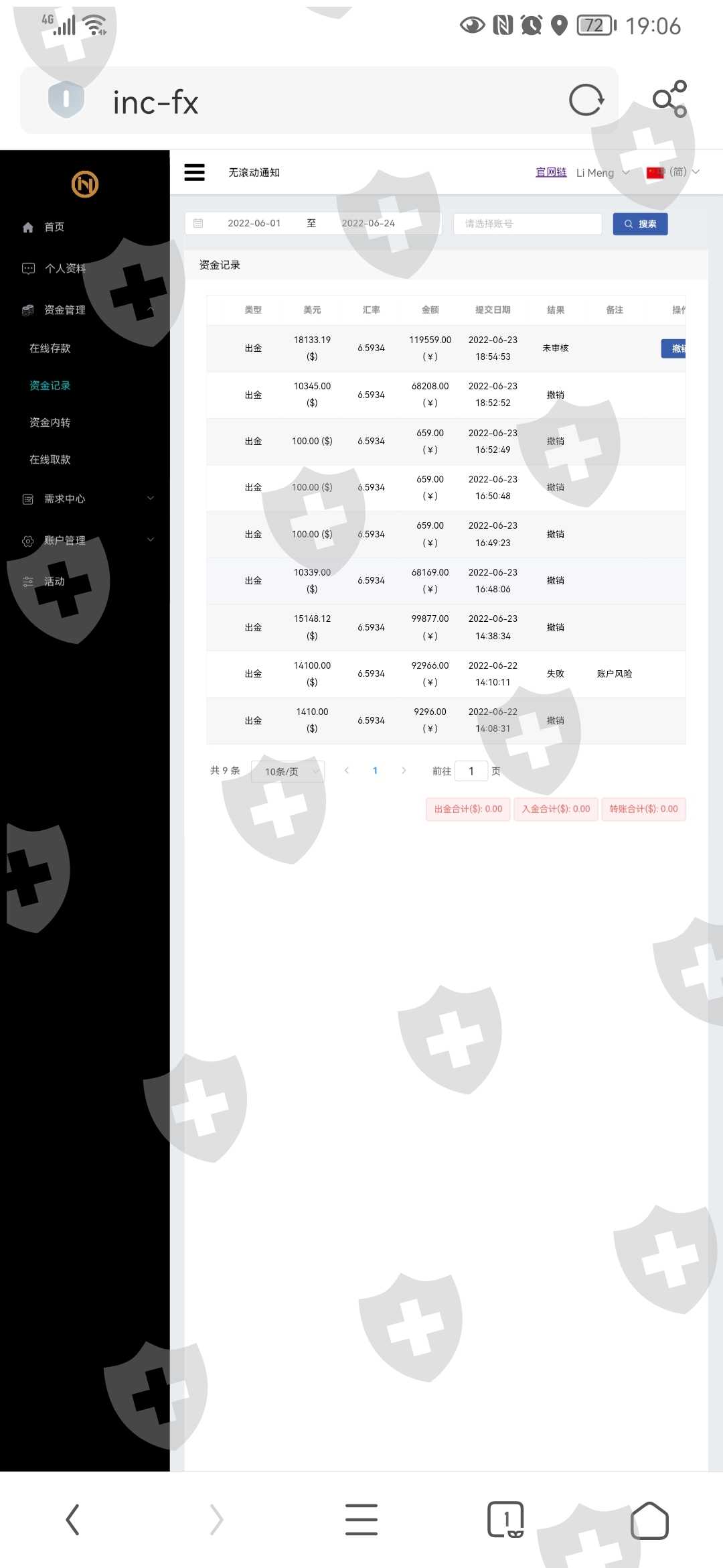 无法出金