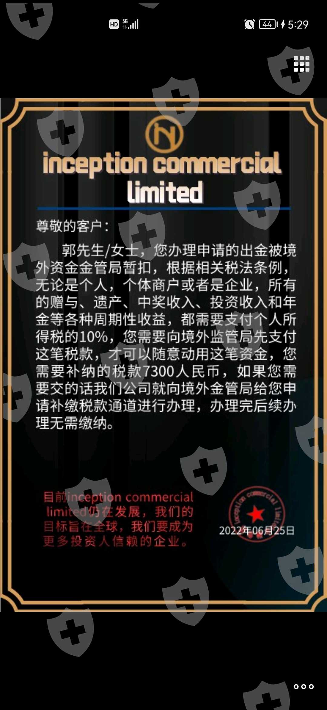 经过朋友介绍认识了这个公司的王经理,做现货黄金先是充值了2万元人民币,难后操作交易了几天,盈利了一部分想提现了,结果告之说操作不当要补保证金4万多,然后可以解封提现,按对方解释,我补了,准备提现了又被告之说帐号异地操作要交认证金五万,我想方设法凑齐了,想着应该可以提现了吧,向对方王经理提出提现申请,结果又告之说资金被外汇局冻结要补7千3的纳税金说补起了就不会有问题可以提现,我发出申请说审核通过24小时内到帐,可是并没有到账。。