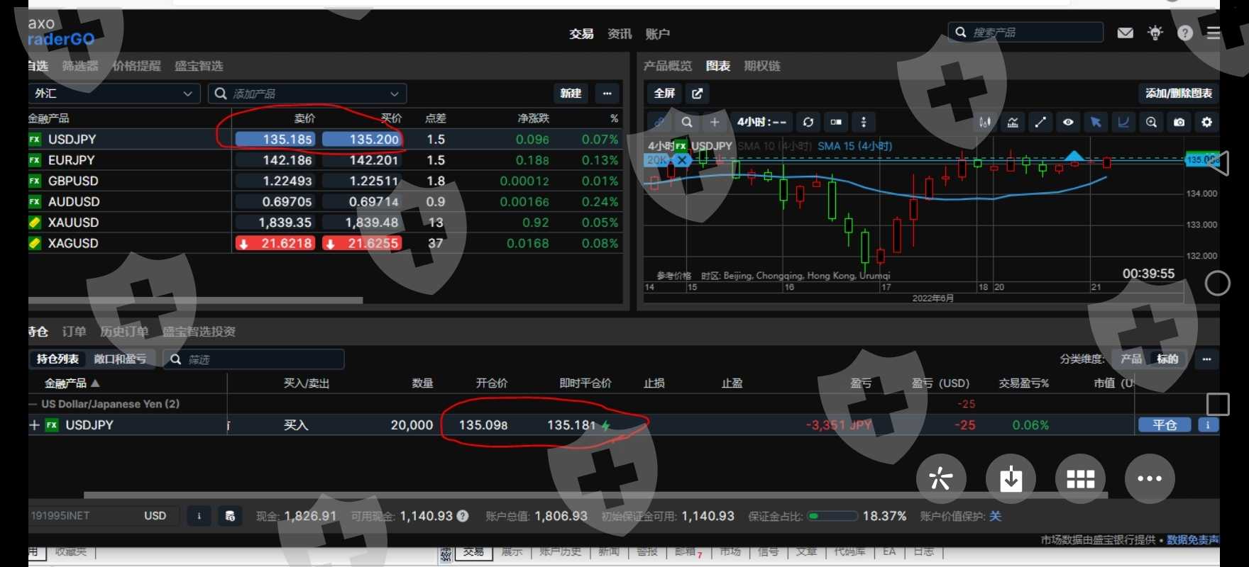 我做USDJPY买入135.098,0.2手,市场到135.2,居然亏损25美元,根本无法操作,等下跌到135.07左右居然只亏损3美元,平仓