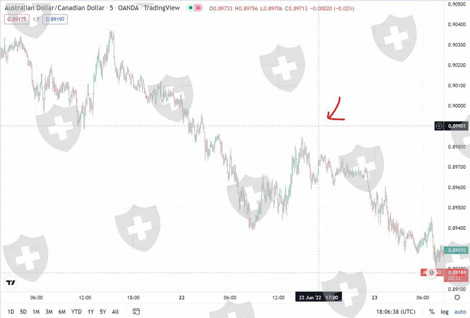 6月26日17:00以 0.899 收盘,但蜡线从未接近该区域 (0.895)。不提供有关外汇报价的数据。