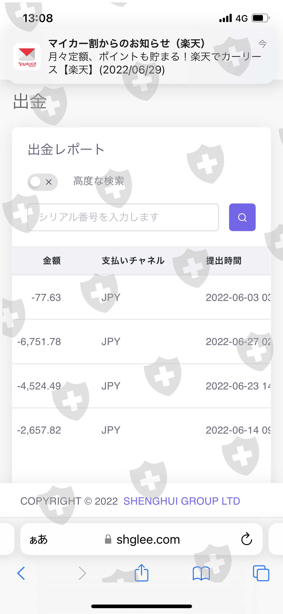 6月29日13時頃には資金全てどこかに出金されて、私のお金は消えました。