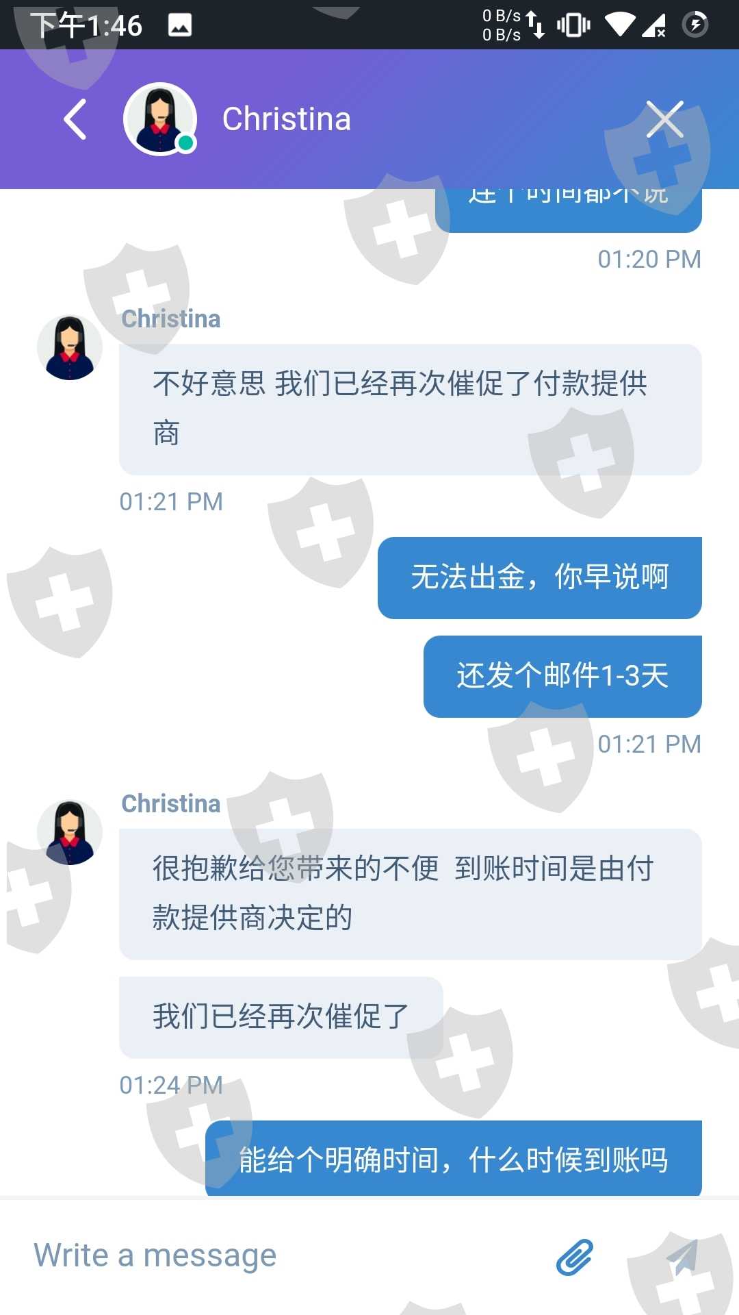 我从6月22号,凌晨四点提出出金申请,到29号了,仍然没有出金,询问客服什么时候解决,客服竟然说不清楚,8天了,估计钱是要不回来了,但也不多,希望大家多多注意,不要在这个辣鸡平台入金,根本没有任何诚意,信用,责任心,出了问题是不会给你解决的,只会当个复读机,打官腔。