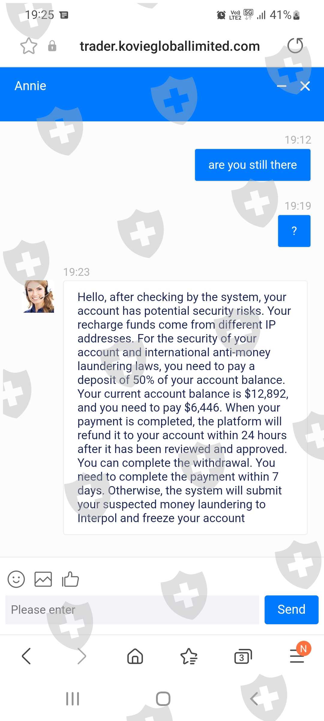 我不认为它们真的存在。没有电话号码只是为了和一位叫安妮的秘书聊天。我存了 10,000 瑞典克朗尝试玩游戏并赢了一些钱。做了一笔小额提款,获得了批准。然后我想提取我的 10,000 瑞典克朗,然后我被拒绝了,因为我必须成为 VIP 客户才能提取这笔钱。要成为 VIP,您必须存入 10,000 美元。我的钱被卡住了,什么也做不了。看图!