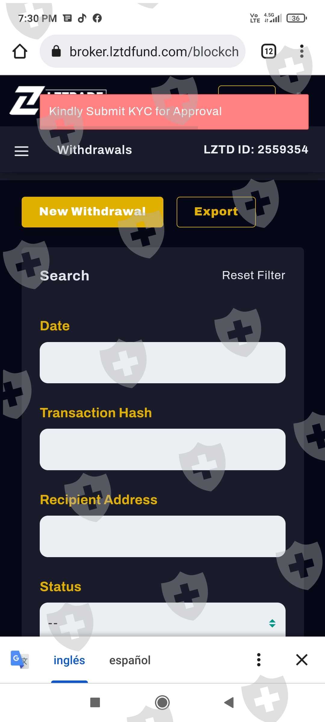 我已经完成了提款的程序,但不允许产生提款,他们也没有给我答复,因此我要求他们在此索赔中进行调解
