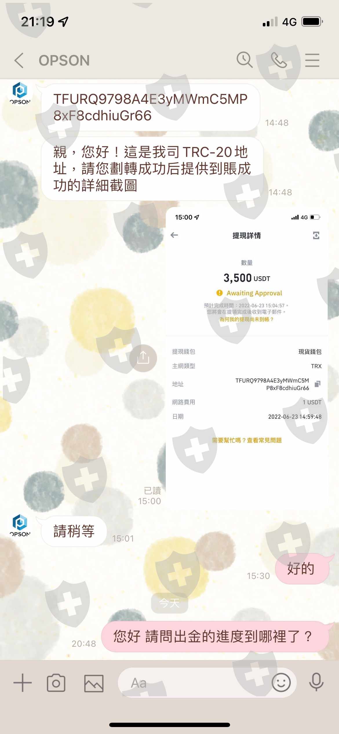 6月20日申請出金,交易所告知要補匯率差,我於6月23補齊,但至今未到帳,墾請協助,謝謝!另原使用Opson交易所,因6月5日對方告知服務器更新,提供網址進行轉換至現在的Vorex。