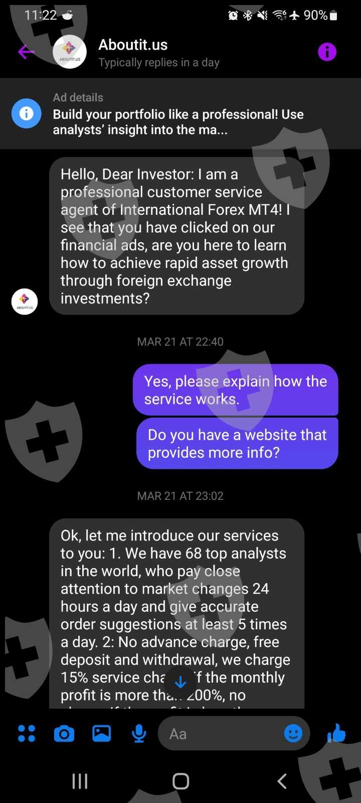 他们在 Facebook 上投放广告。我询问了它并开始在他们的平台上进行交易,并且在跟踪信号方面做得很好。我投入了5k直播,但在他们的信号下丢失了它。然后添加 10K 并交易到 19K。接下来我听说了机器人交易,他们给了我一些信息。需要添加 20K 才能允许机器人交易。然后我被告知有 10K 的费用让他们的技术组进行编码。这让我很生气,因为我没有被告知这件事,所以我抱怨它,当然被告知我会在几周内恢复。现在机器人交易进展顺利,达到了 85,000 美元,我想提现,他们开始谈论提现的其他服务费。我告诉他们,所欠的任何服务费都需要来自我在账户中赚到的钱或存款。他们一直说必须在提款前付款。我应该可以免费收取押金,所以我拒绝了。现在他们声称我的帐户已被冻结,资产已被他们的银行没收。根据他们的消息,他们的银行应该是渣打银行。现在,当我尝试登录他们的在线网站时,我被拒绝访问。同样在 mt4 平台上,所有交易历史都已删除。我有所有消息、交易、交易历史等的副本,并将尝试附上。如果没有,请联系我,我可以通过电子邮件发送。尽快提交,这样您的网站就不会再次超时。