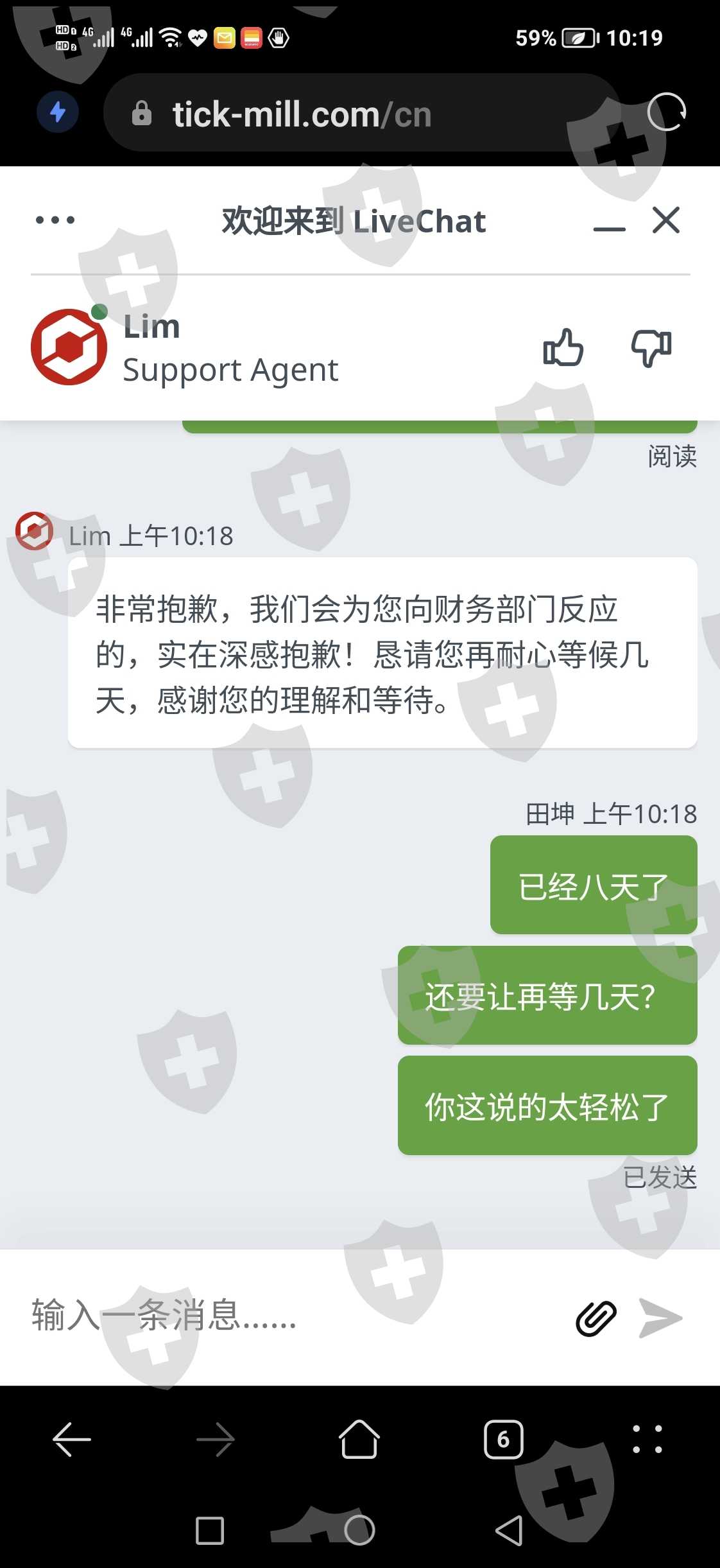 上周四6.23出金三千美金,到今天周五了,八天还没到账,找客服反馈也不能给予确切结果,就是让继续等着,