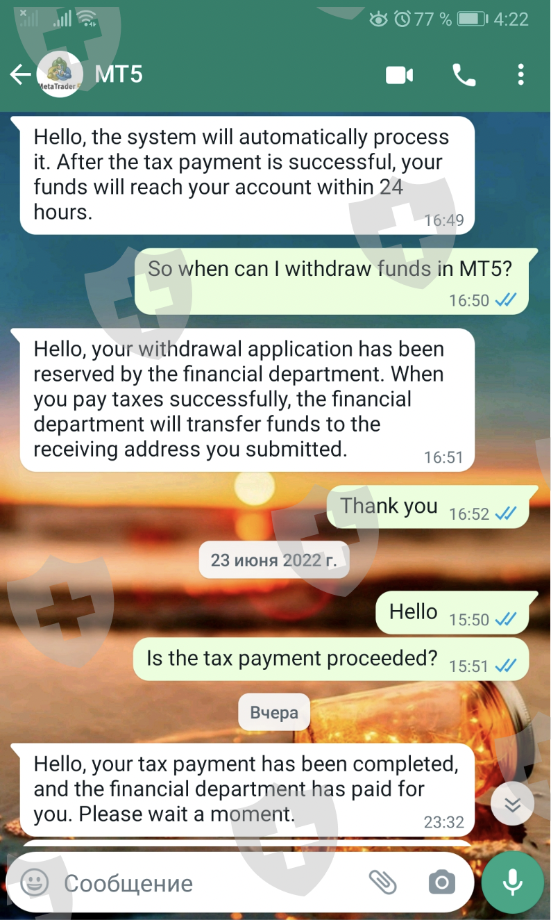 我正要从交易账户中取款。有人告诉我我需要往账户里存更多的钱,否则我无法取款。我这样做了,但他们随后要求更多的钱,当我向fintrack/org提出索赔时,我拿回了我的投资,这标志着我与 GYD国际有限公司听到这件事给我带来了很大的压力 GYD说他们在处理我最初的提款请求时犯了一个错误,这就是他们试图阻止我的帐户的原因